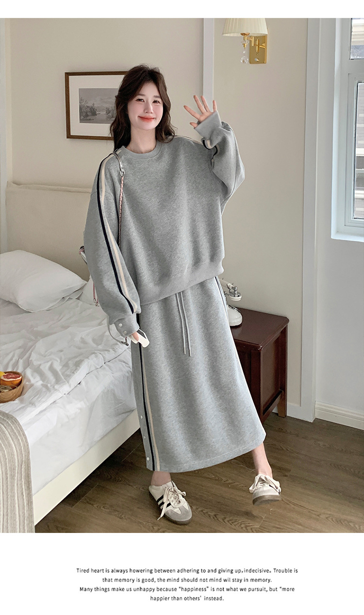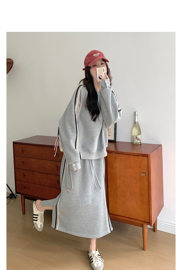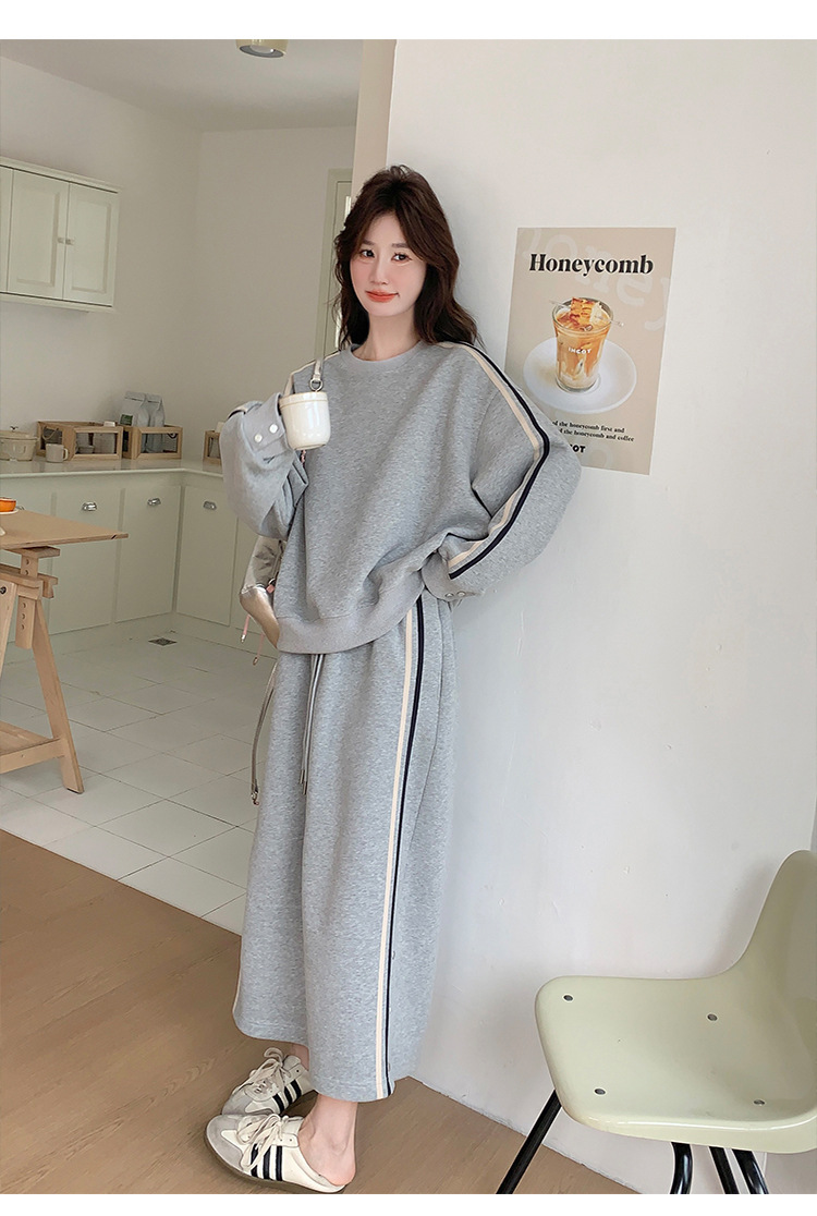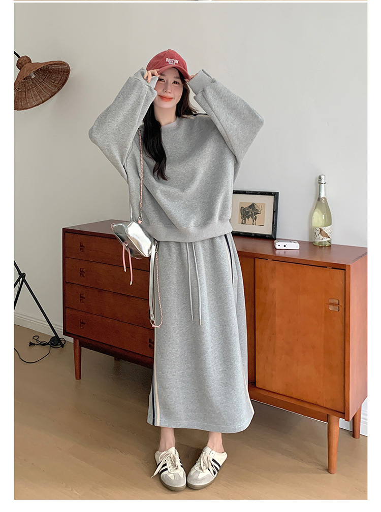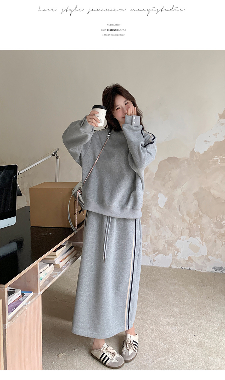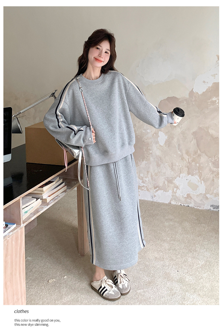 그레이 패션 한국 스타일 스웨트셔츠 세트 여성용 봄 2025 신상 디자인 스커트 투피스 세트 컬리지 스타일스토어 가기