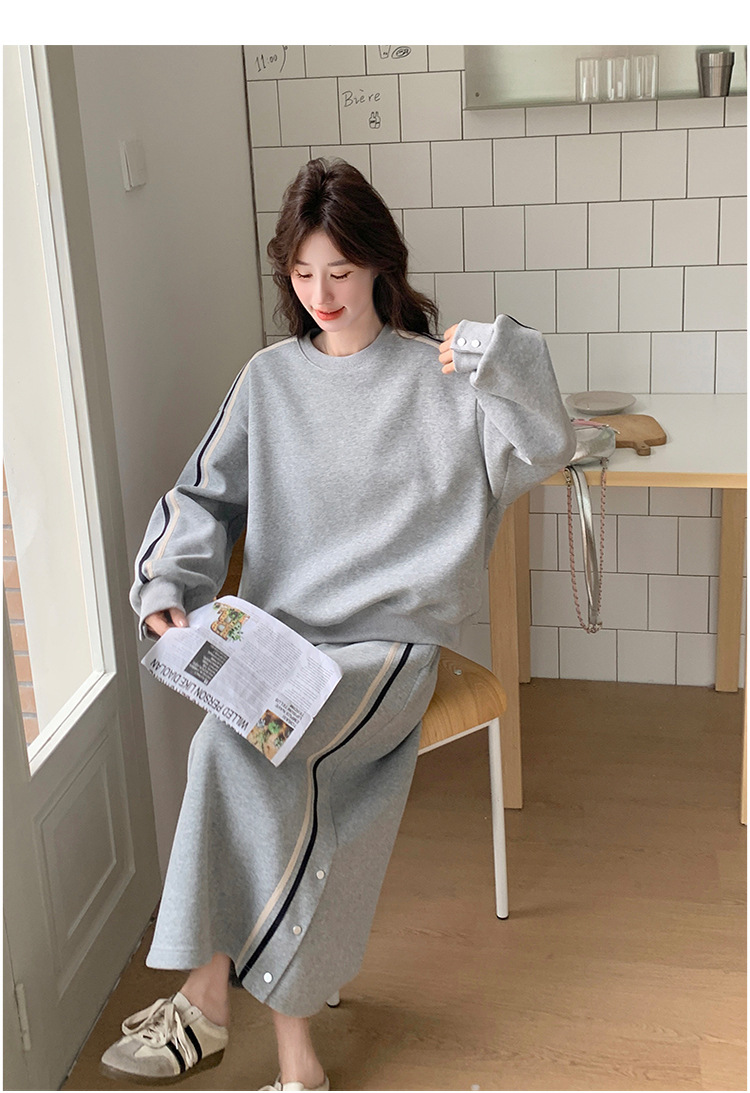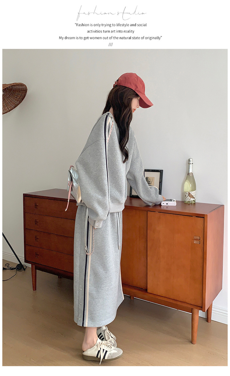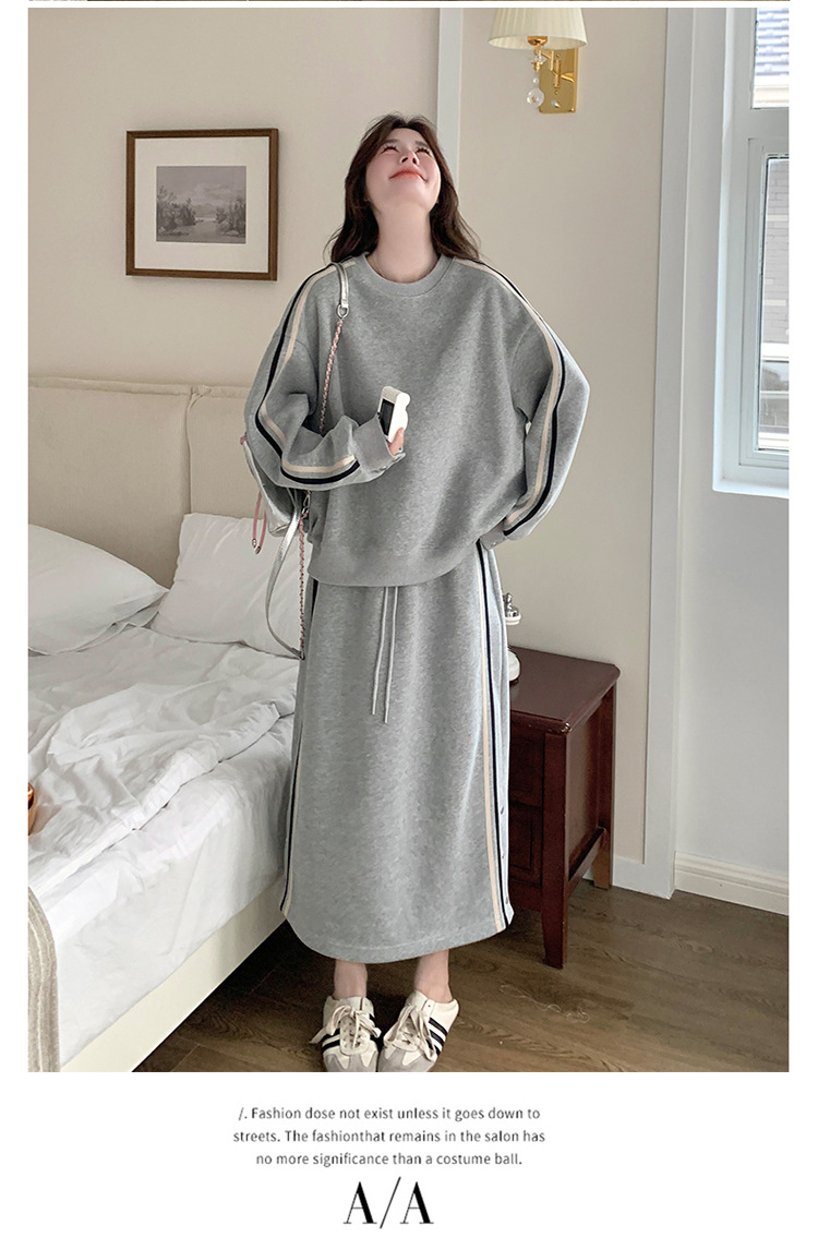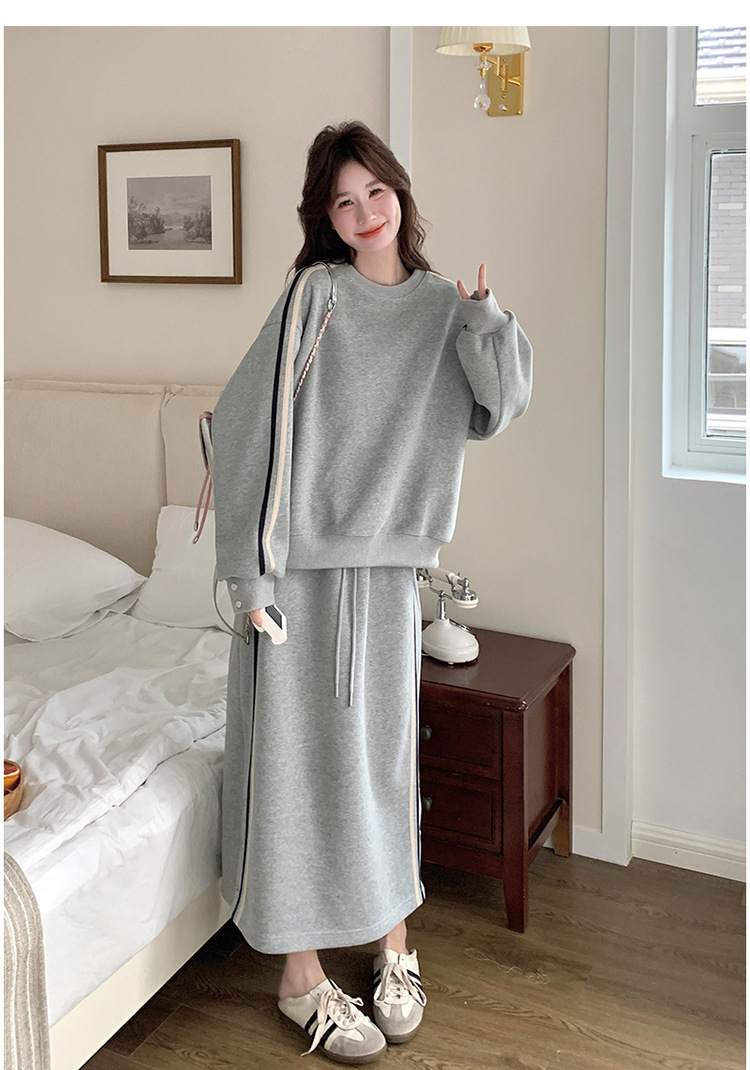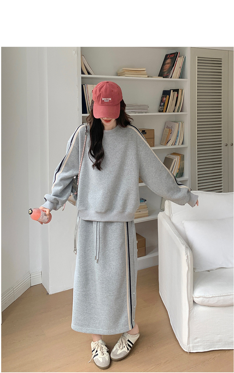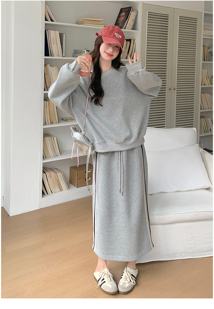 그레이 패션 한국 스타일 스웨트셔츠 세트 여성용 봄 2025 신상 디자인 스커트 투피스 세트 컬리지 스타일스토어 가기