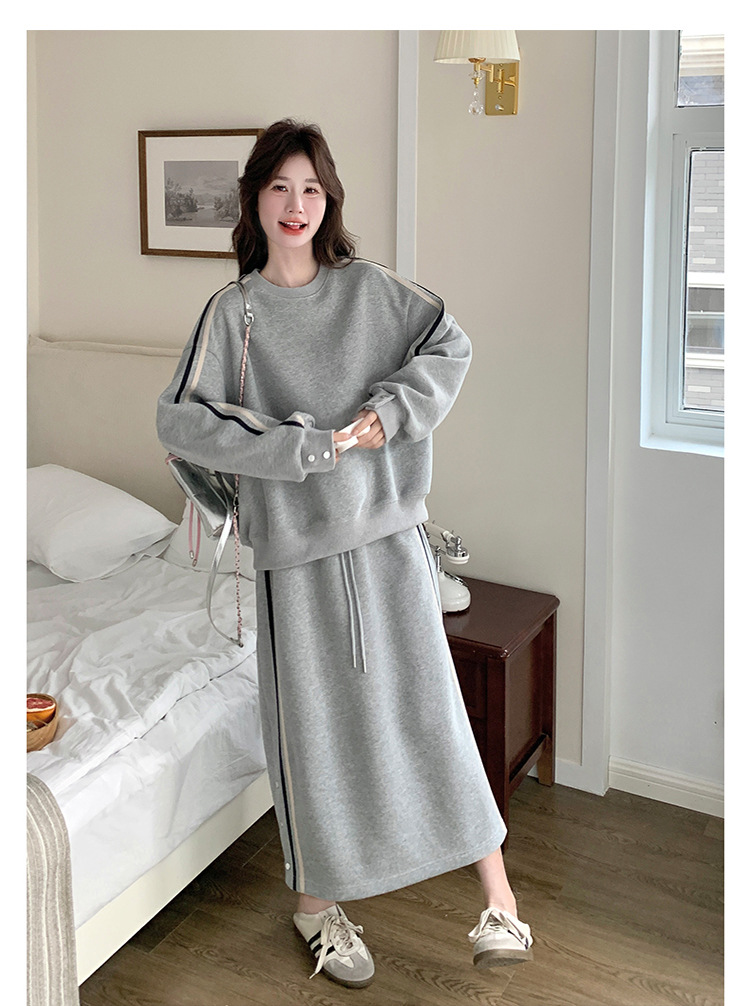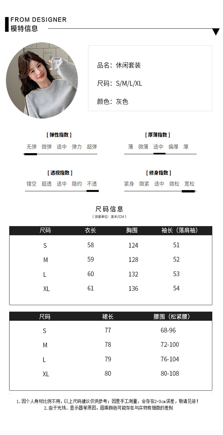 그레이 패션 한국 스타일 스웨트셔츠 세트 여성용 봄 2025 신상 디자인 스커트 투피스 세트 컬리지 스타일