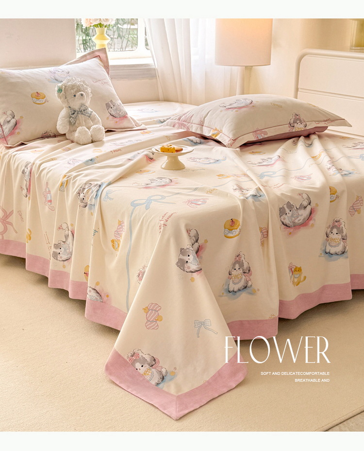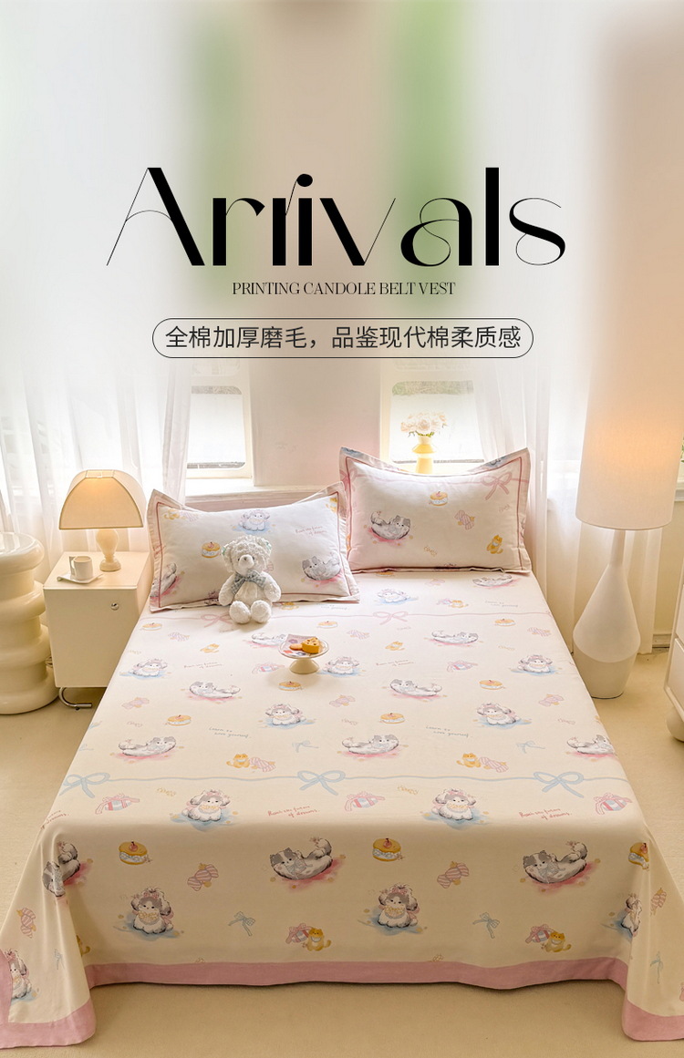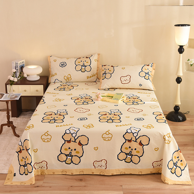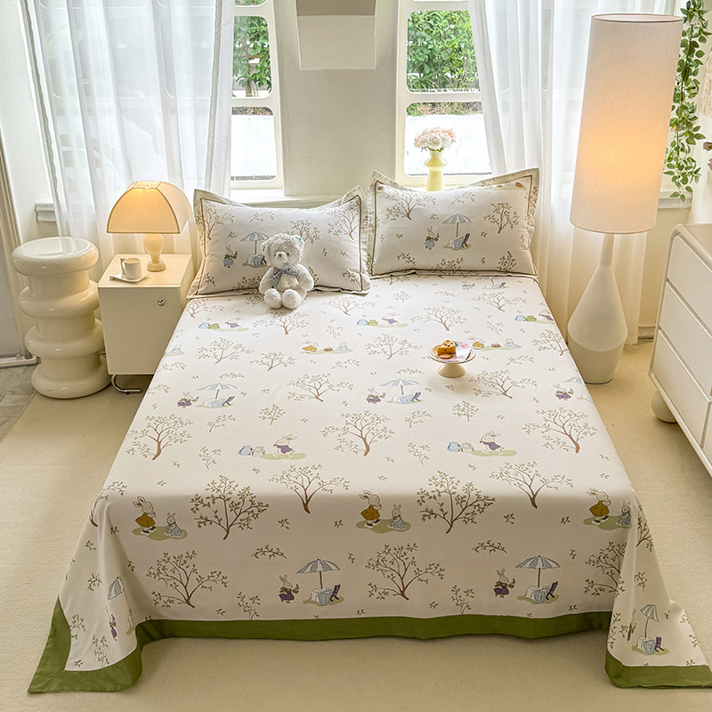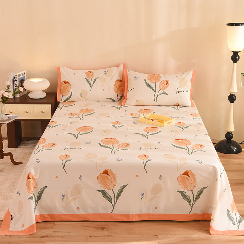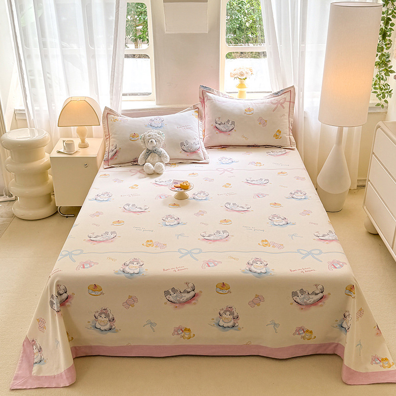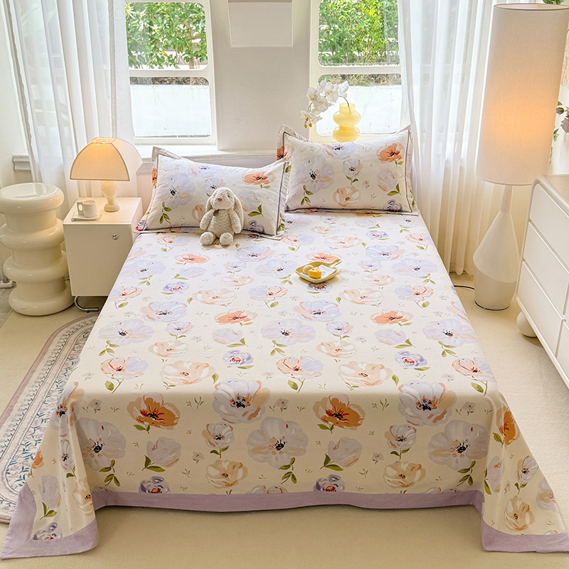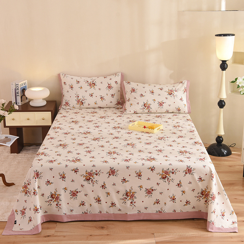 A 등급 두꺼운 면 샌딩 침대 시트 원피스 100 면 어린이 신선한 꽃 침대 시트 베개 3 피스 기숙사