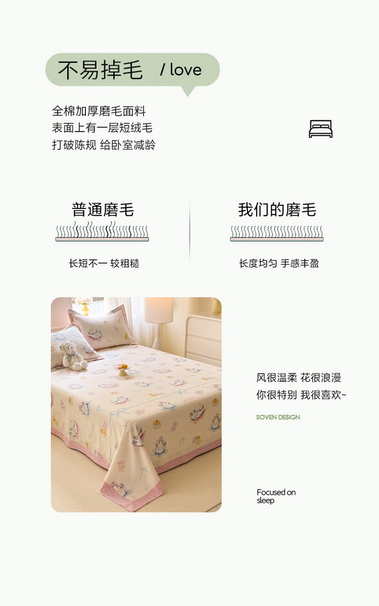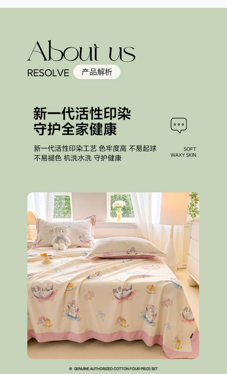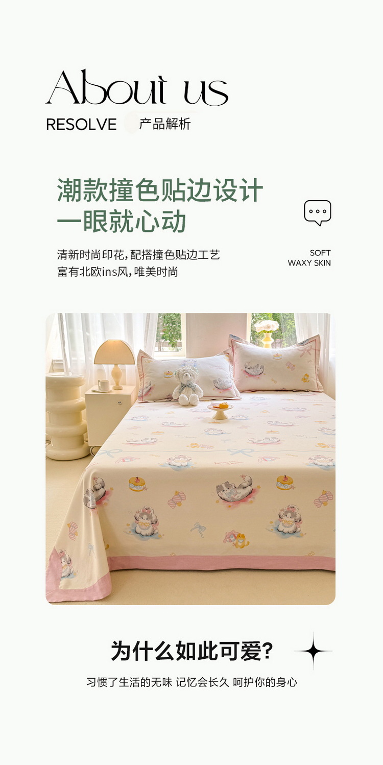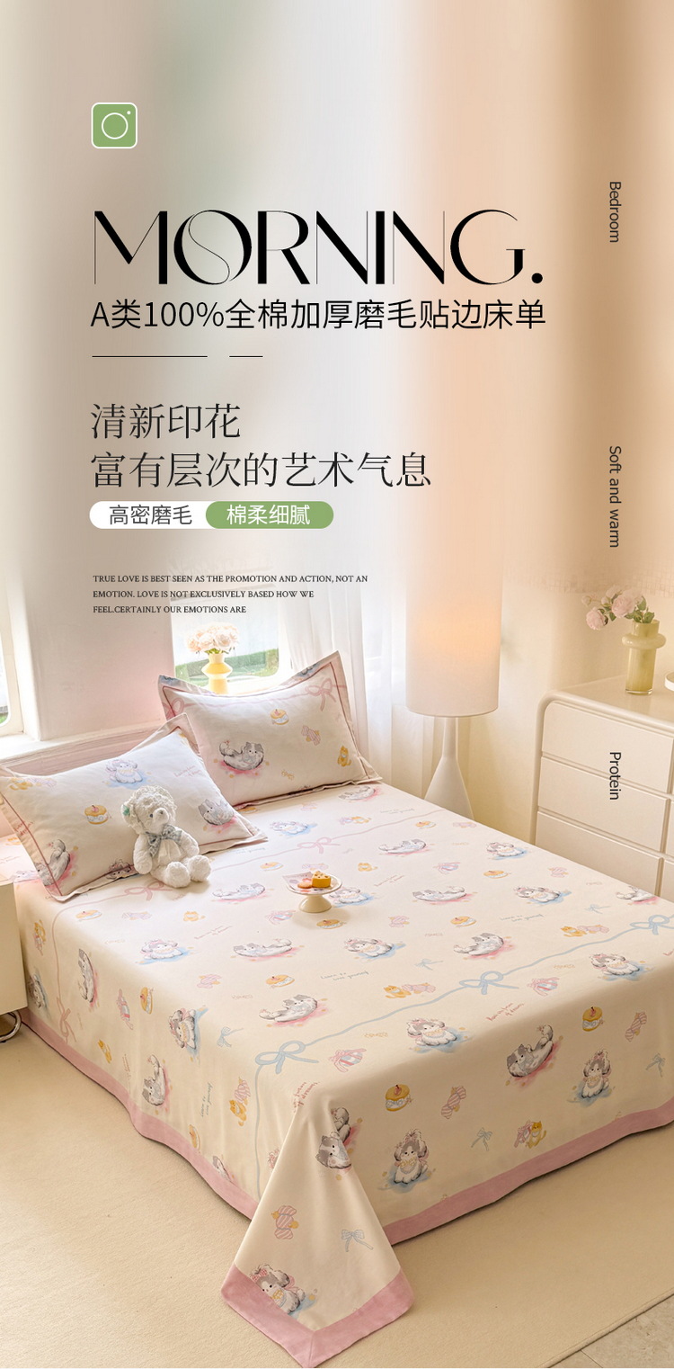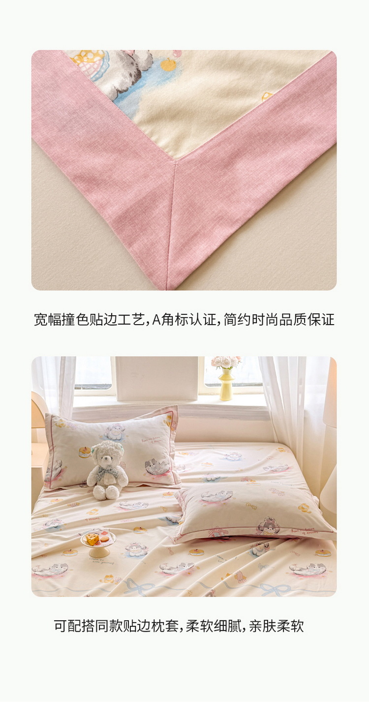 A 등급 두꺼운 면 샌딩 침대 시트 원피스 100 면 어린이 신선한 꽃 침대 시트 베개 3 피스 기숙사