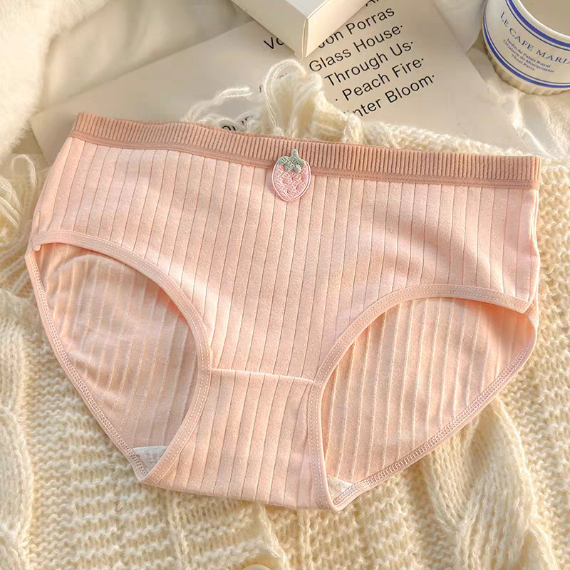 속옷 여성의 여름 얇은 통기성 퓨어 코튼 크로트 딸기 트레이너리스 미드 웨이스트 소녀 일본식 여성용 트라이앵글 반바지