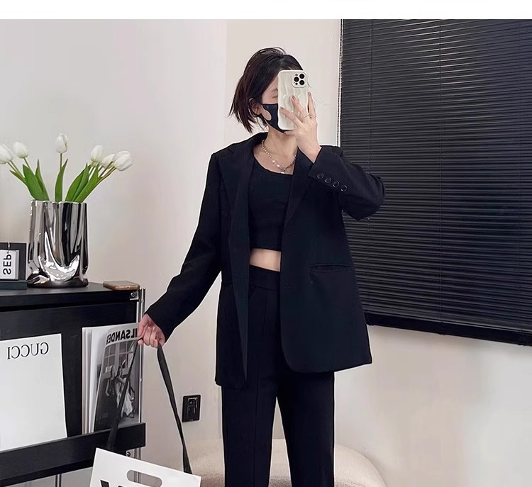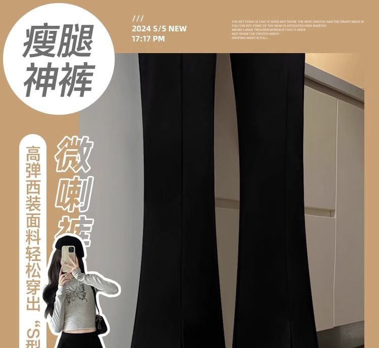 블랙 마이크로 라라 바지 여성의 봄과 가을 여름 높은 허리 슬리밍 사그 작은 캐주얼 말굽 바지스토어 가기