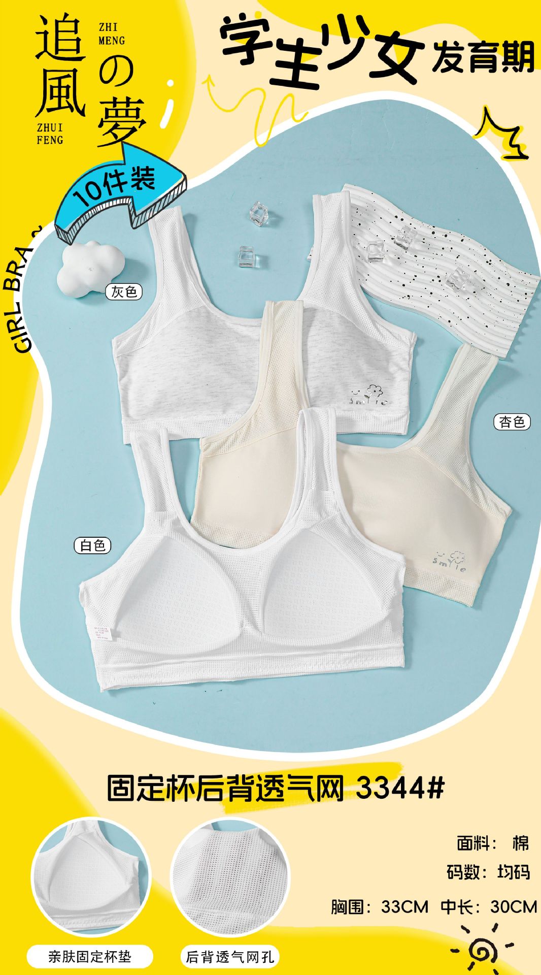 바람을 쫓는 꿈 통기성 고정 코스터 개발 소녀 속옷 사춘기 다시 통기성 편안한 학생 조끼스토어 가기