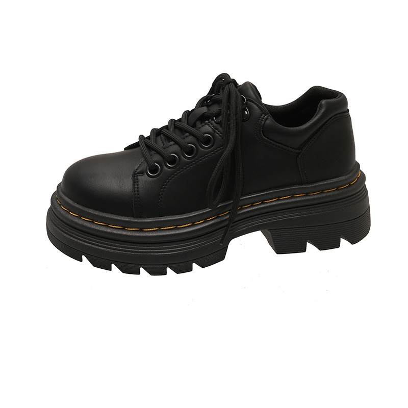 다크 브라운 레트로 영국 스타일 작은 가죽 신발 여성의 2024 가을 및 겨울 새로운 두꺼운 단독 증가 모든 매치 싱글 레이어 신발 마틴 신발스토어 가기