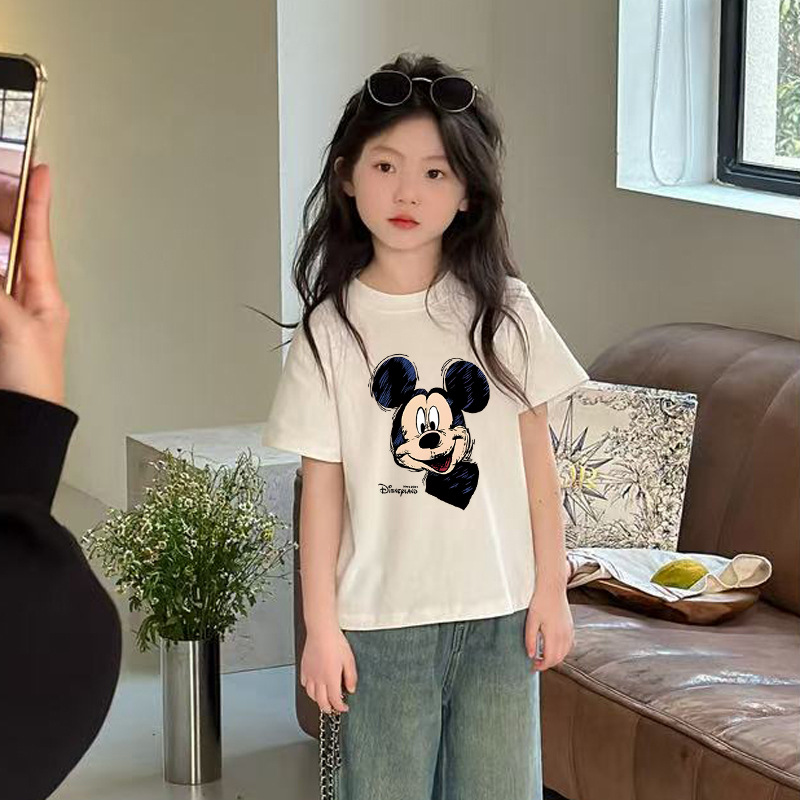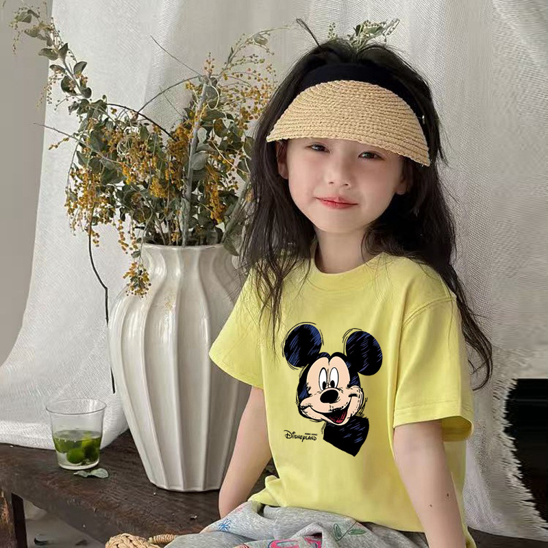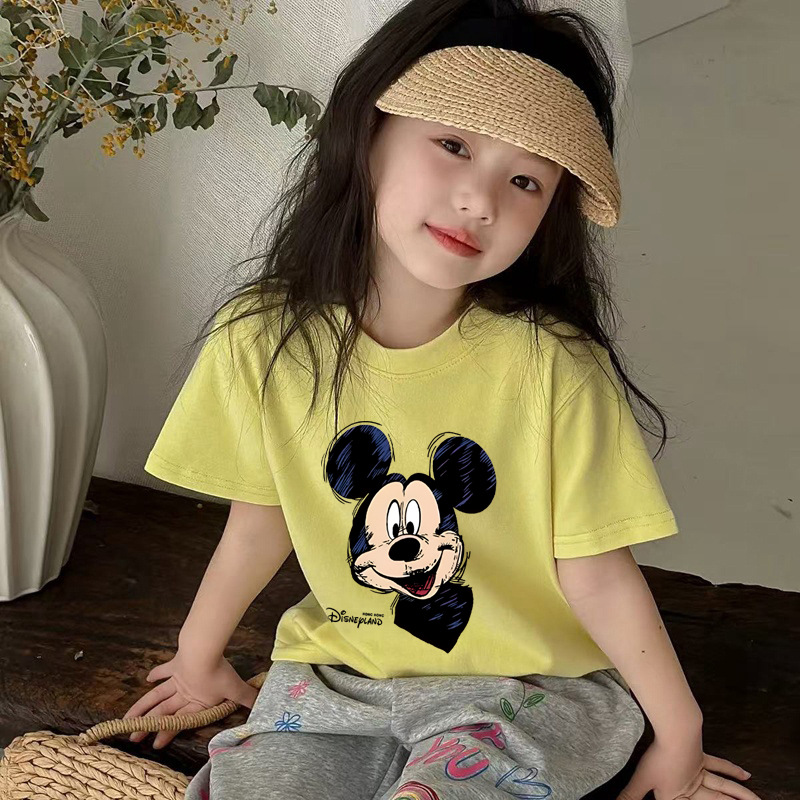 얼음 도자기 면 어린이 만화 미키 인쇄 티셔츠 여름 짧은 소매 최고 여름 소녀 라운드 넥 탑 트렌디스토어 가기