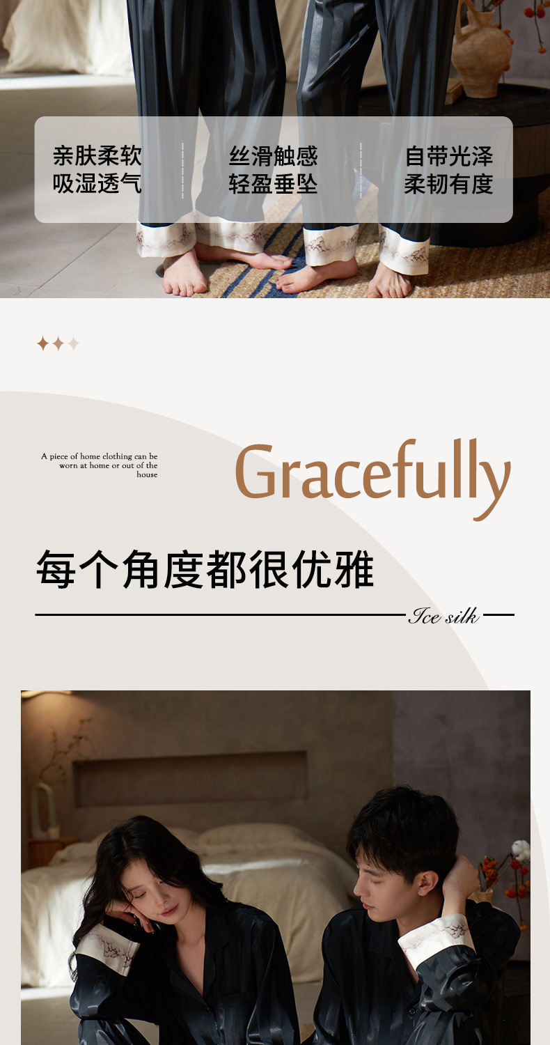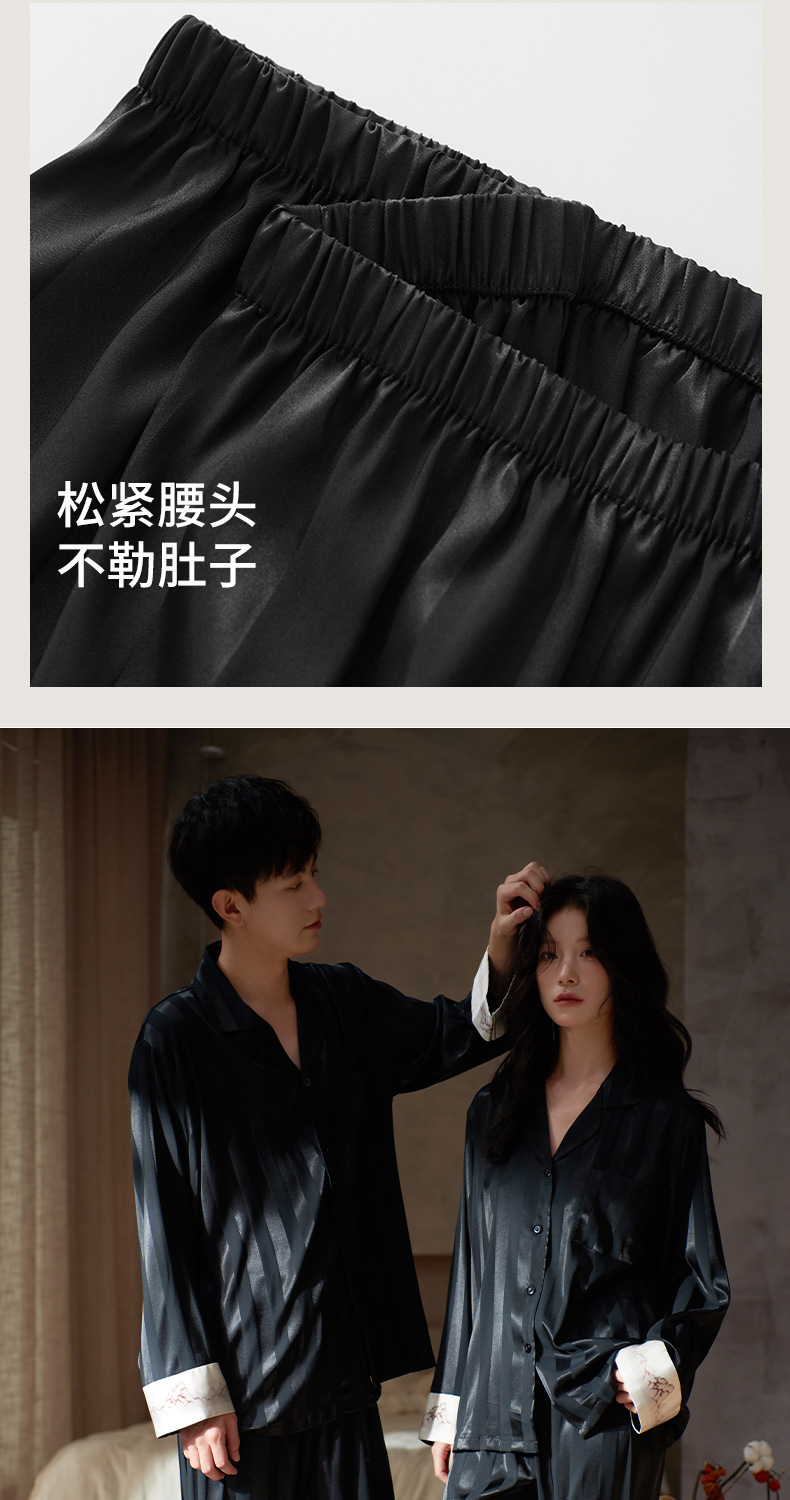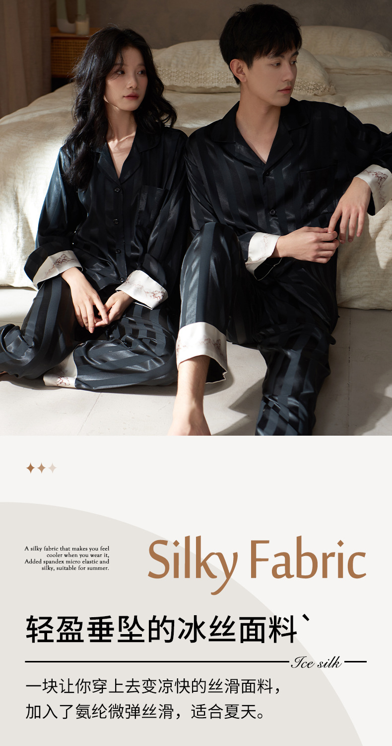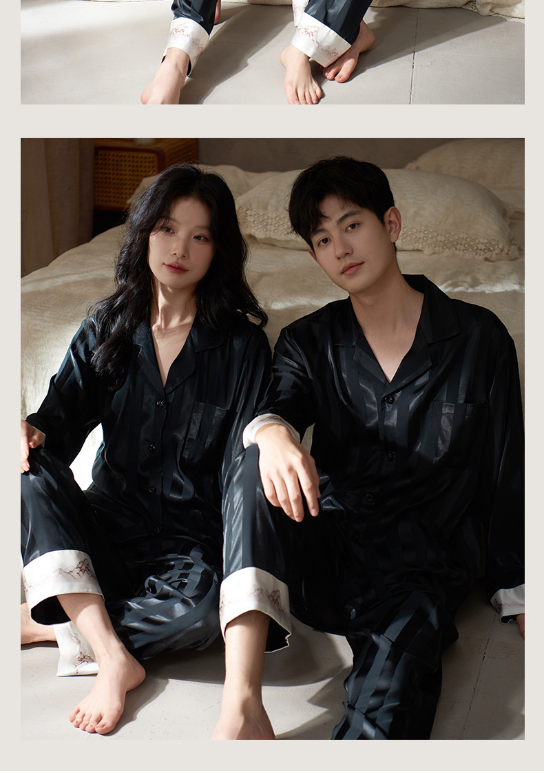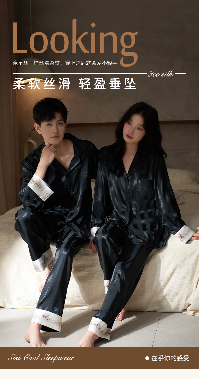 새로운 커플 잠옷 봄과 가을 아이스 실크 긴 소매 아웃웨어 홈 의류 흑인 남성과 여성 세트스토어 가기