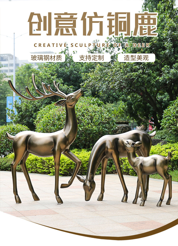 모조 구리 추상 시카 사슴 조각 FRP 야외 정원 조경 지구 판매 부 동물 장식 장식품스토어 가기