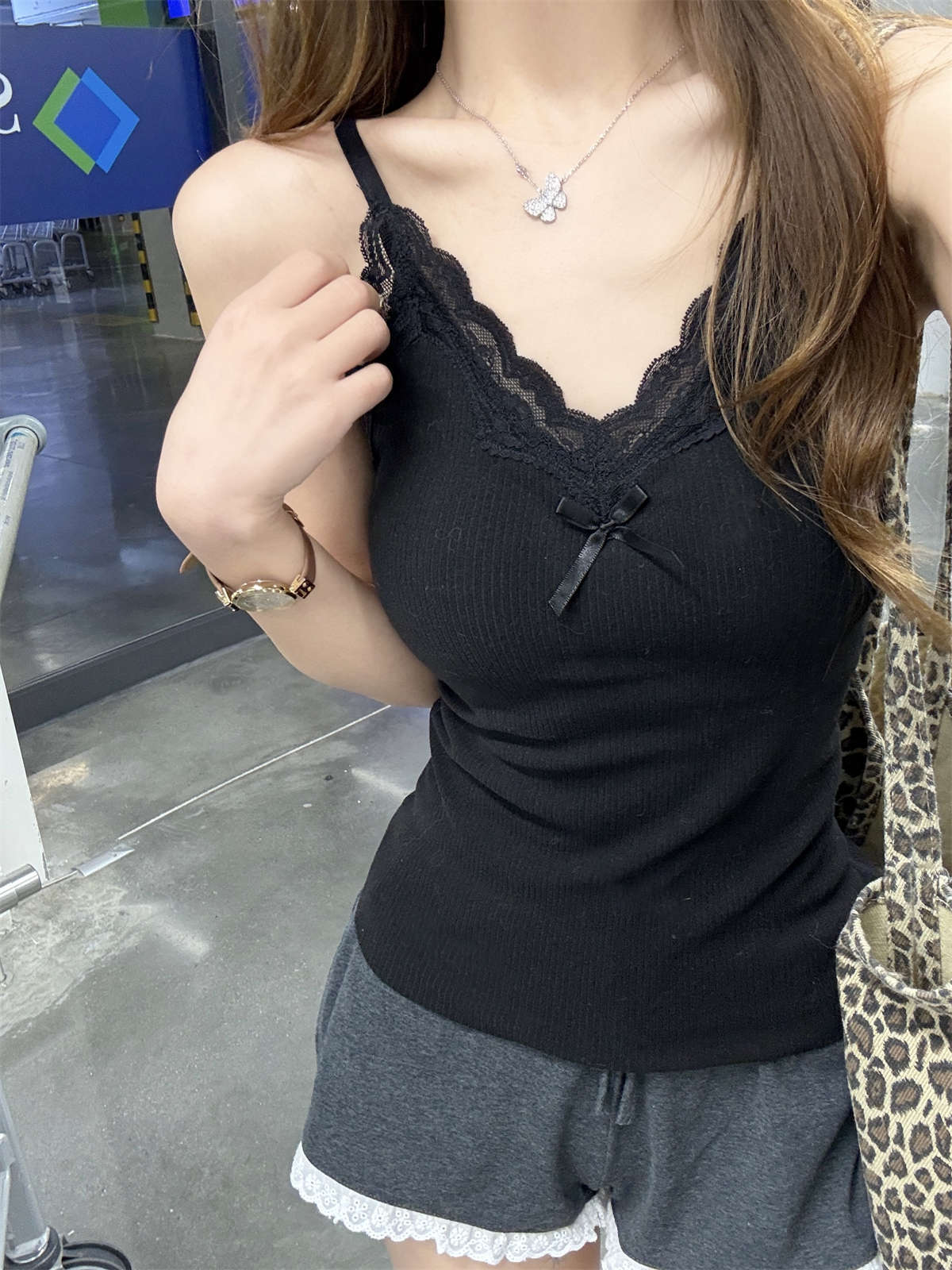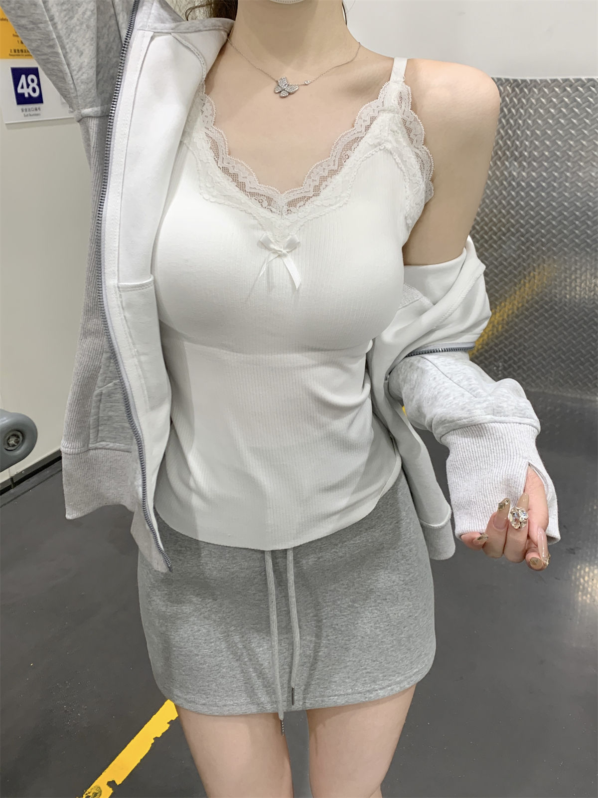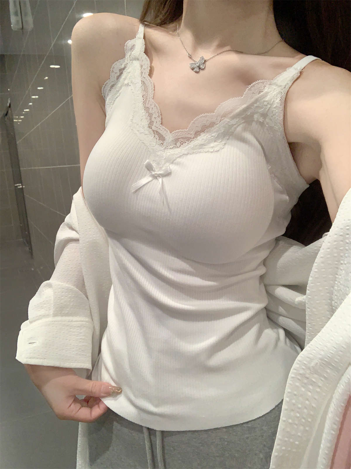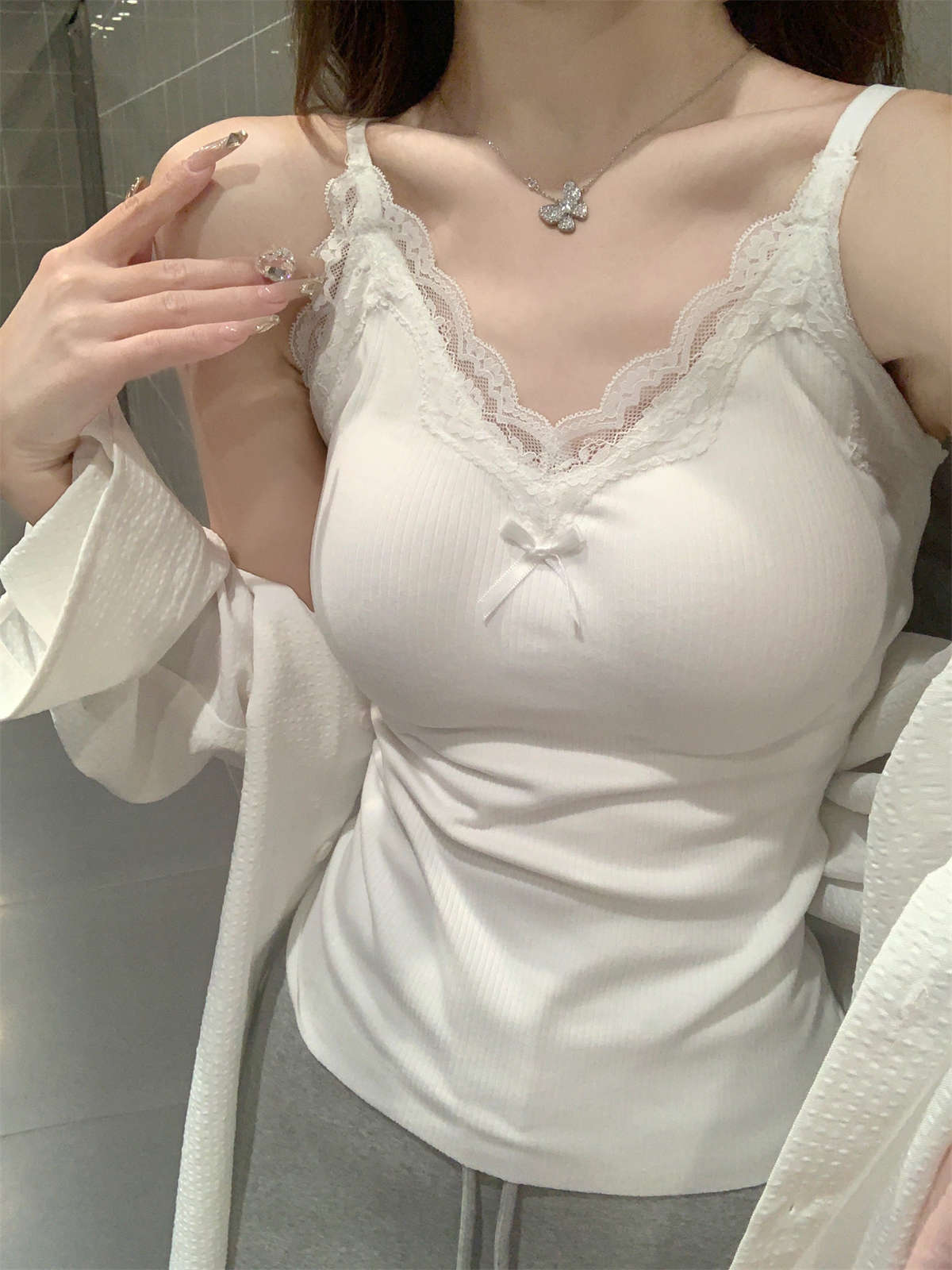 순수 V-넥 레이스 스트랩 어깨 스트랩 조정 가능한 조끼 여성 봄 2025 슬림 핏 원피스 탑 가슴 패드스토어 가기