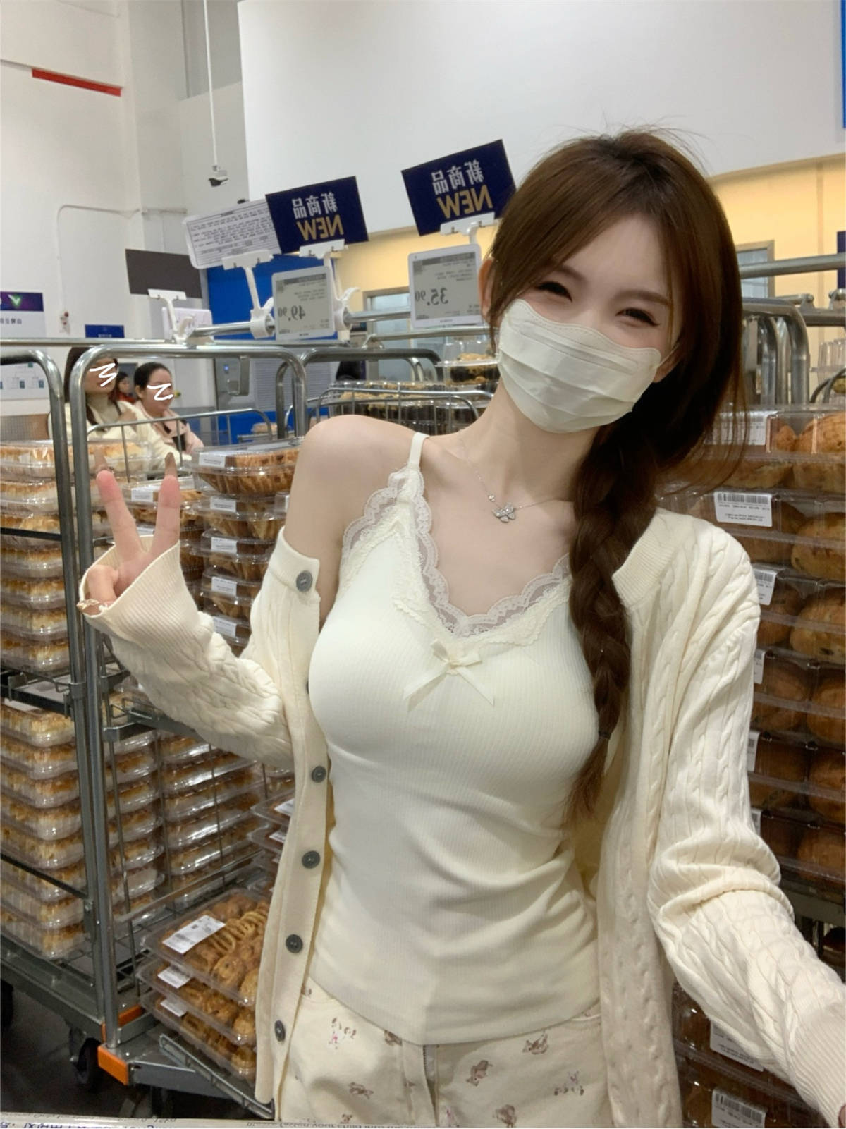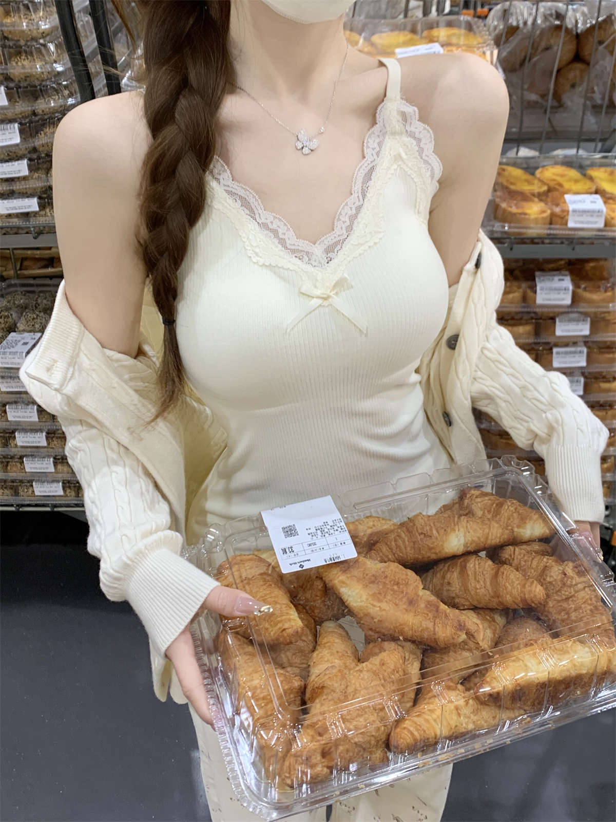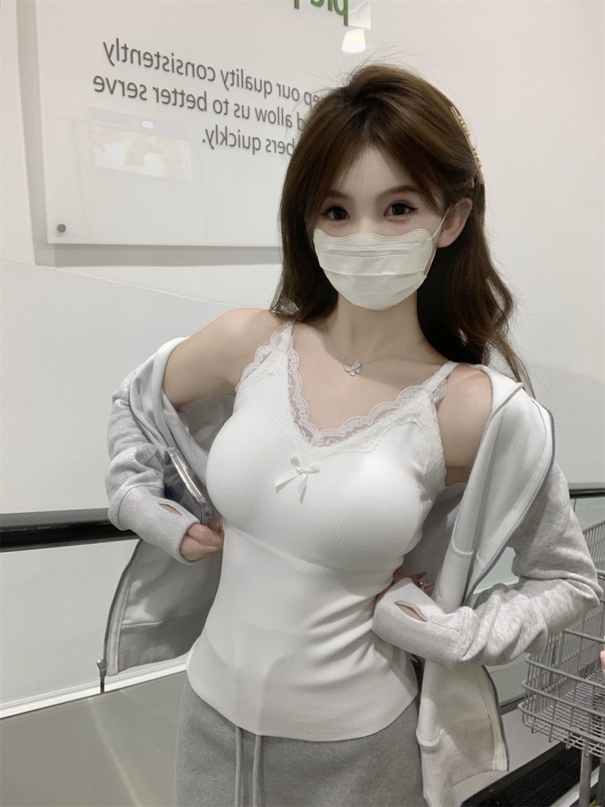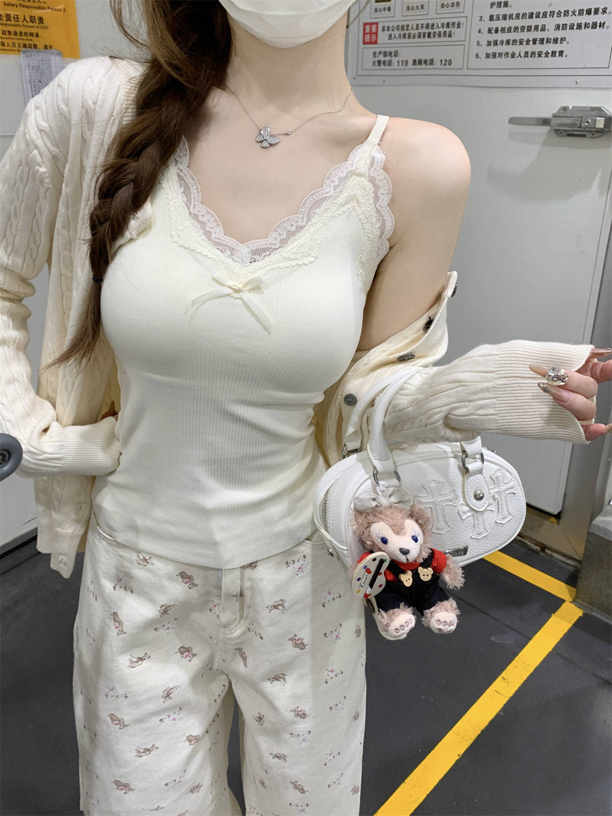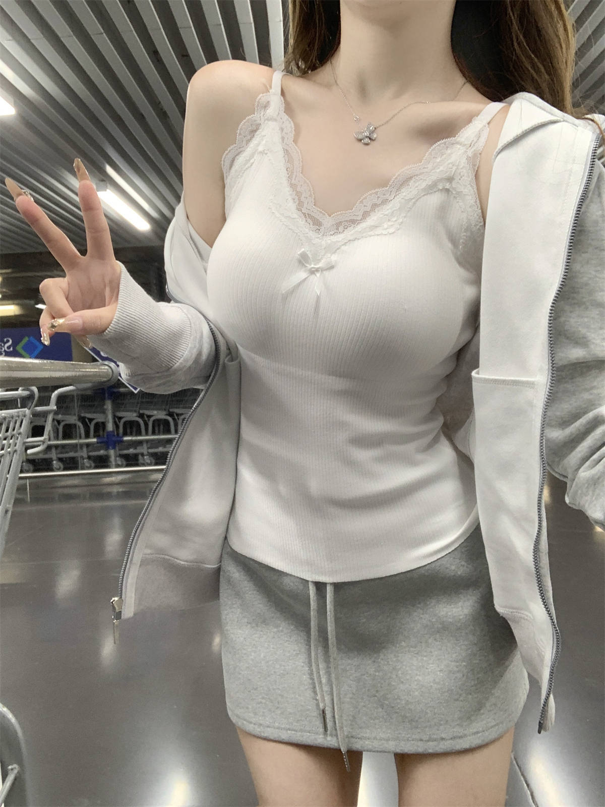 순수 V-넥 레이스 스트랩 어깨 스트랩 조정 가능한 조끼 여성 봄 2025 슬림 핏 원피스 탑 가슴 패드스토어 가기