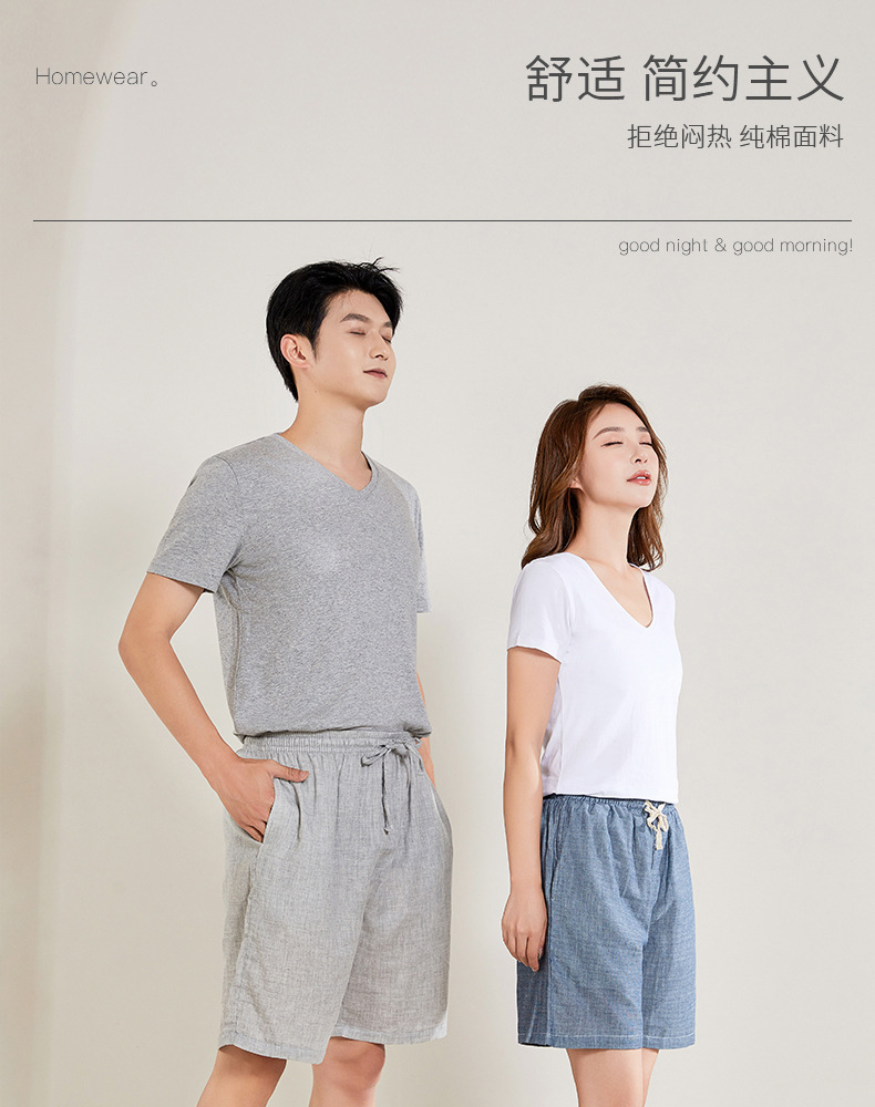 여름의 엄격한 선택은 연인 반바지 파자마 면화 더블 거즈 남성 여성 홈 의류 도매스토어 가기