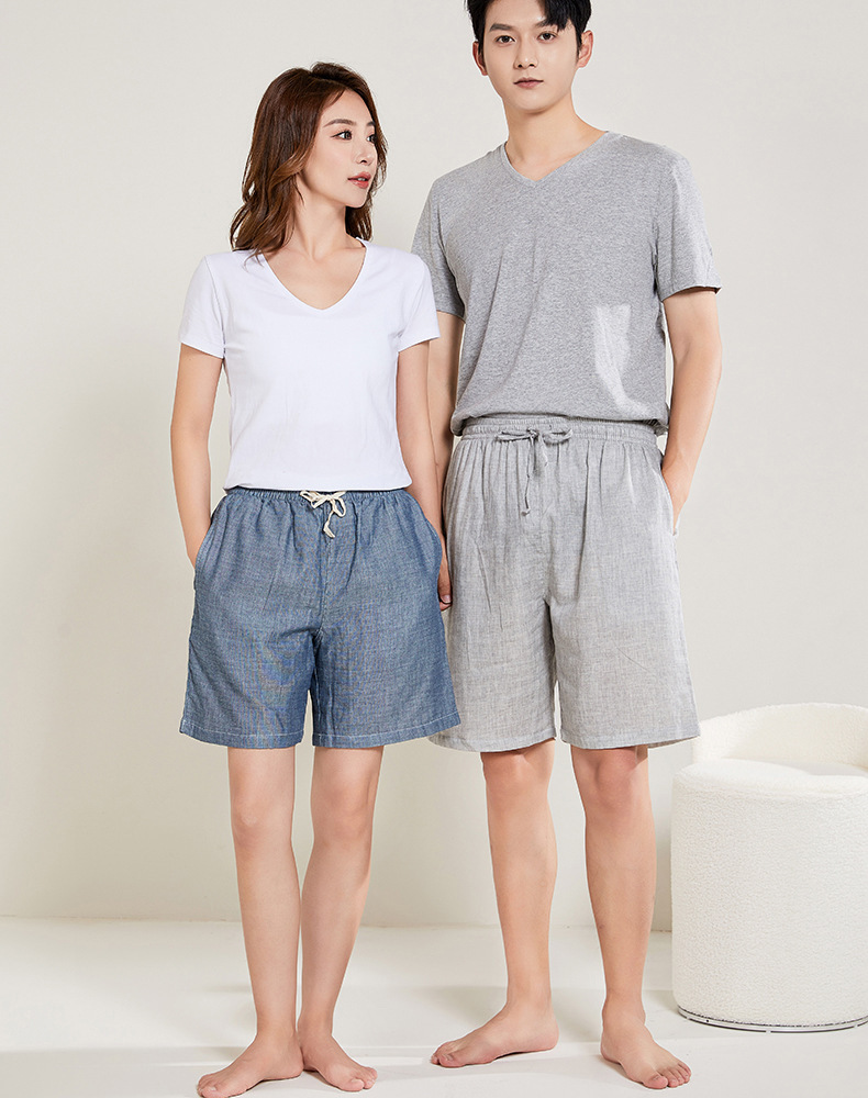 여름의 엄격한 선택은 연인 반바지 파자마 면화 더블 거즈 남성 여성 홈 의류 도매