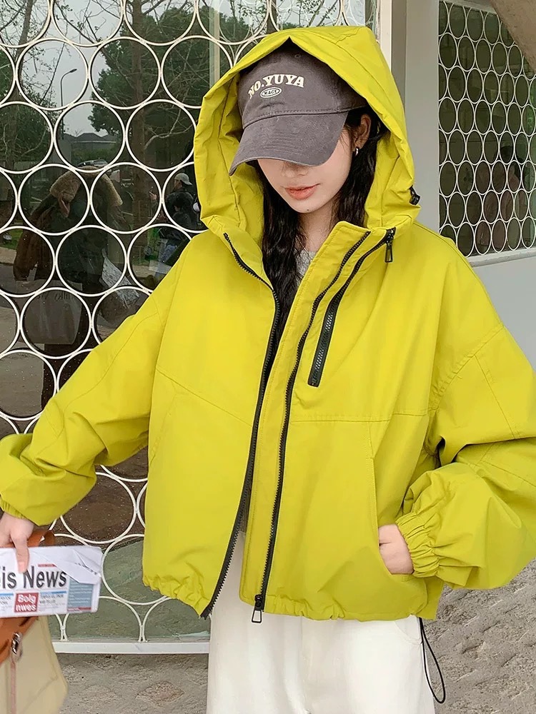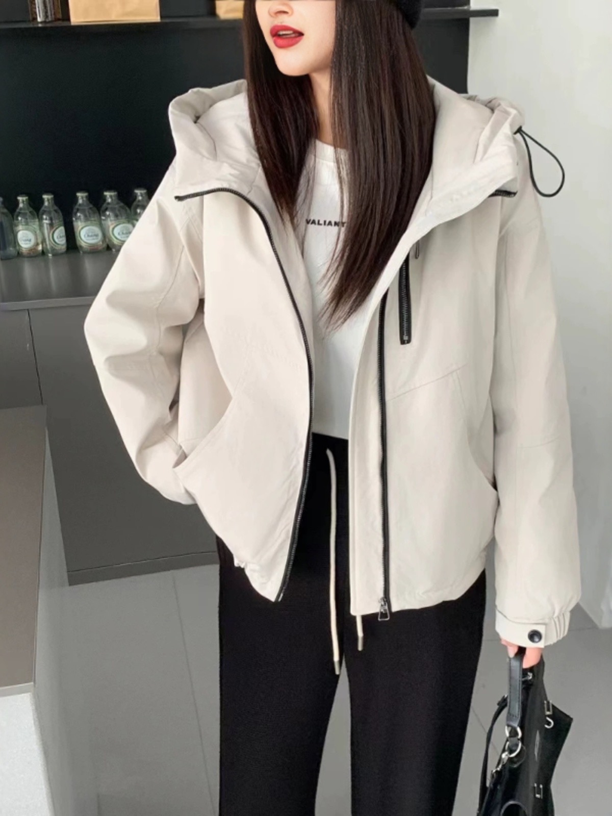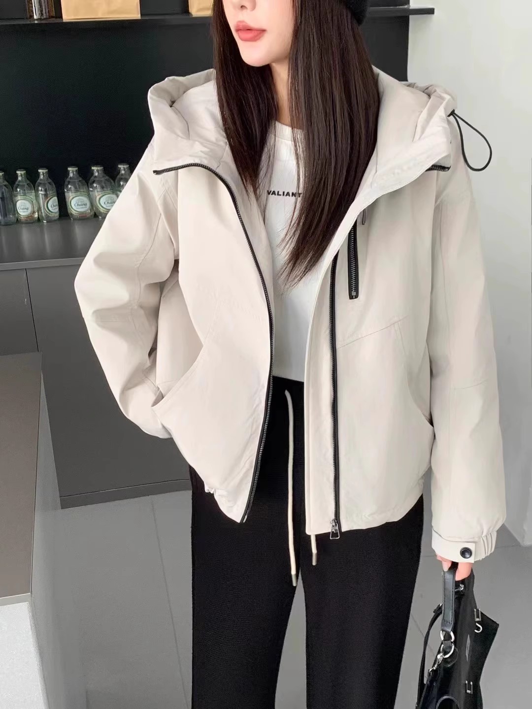 패션 후드 짧은 재킷 짧은 재킷 여성의 2025 봄 새로운 멋진 캐주얼 작업 재킷 탑스토어 가기