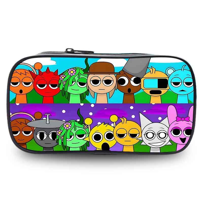 Sprunki 연필 케이스 초등학교 연필 케이스 문구 가방 리듬 박스 만화 게임 어린이 대용량 연필 케이스