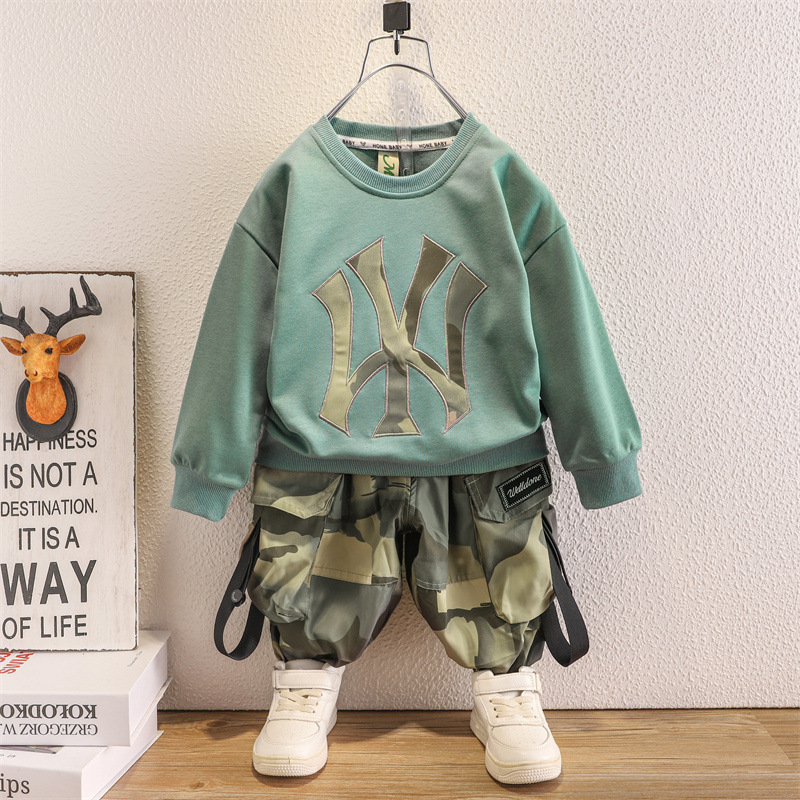 남학생 봄 위장 바지 세트 2025 새 아동복 잘 생긴 아기 봄과 가을 조끼 대외 무역 캐주얼 투피스 세트