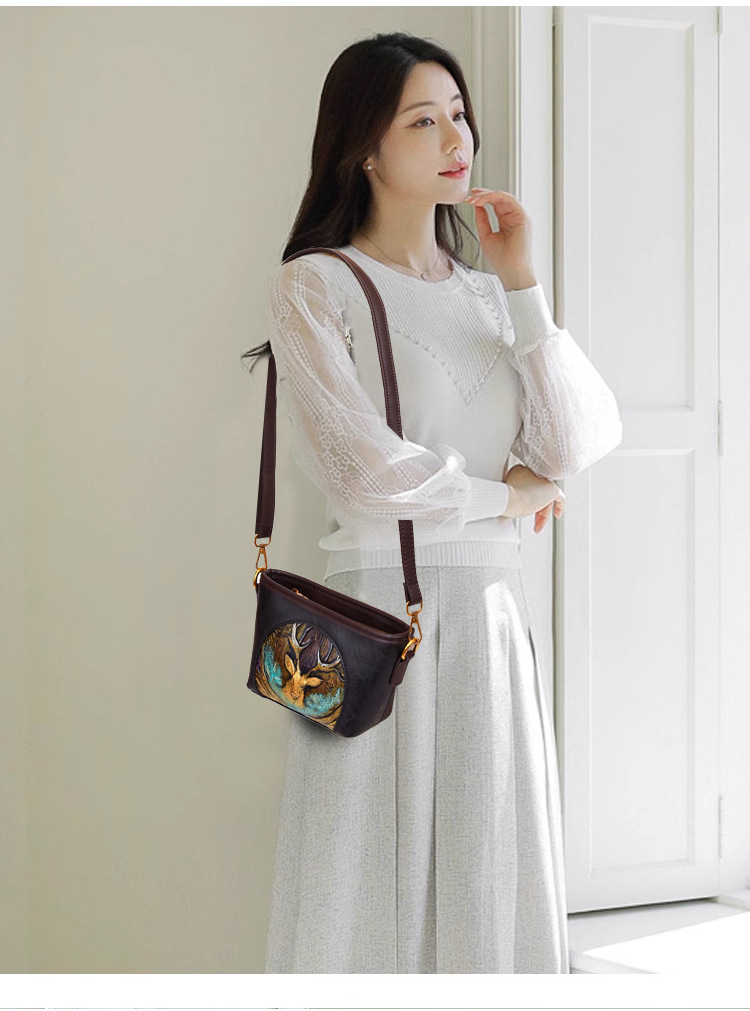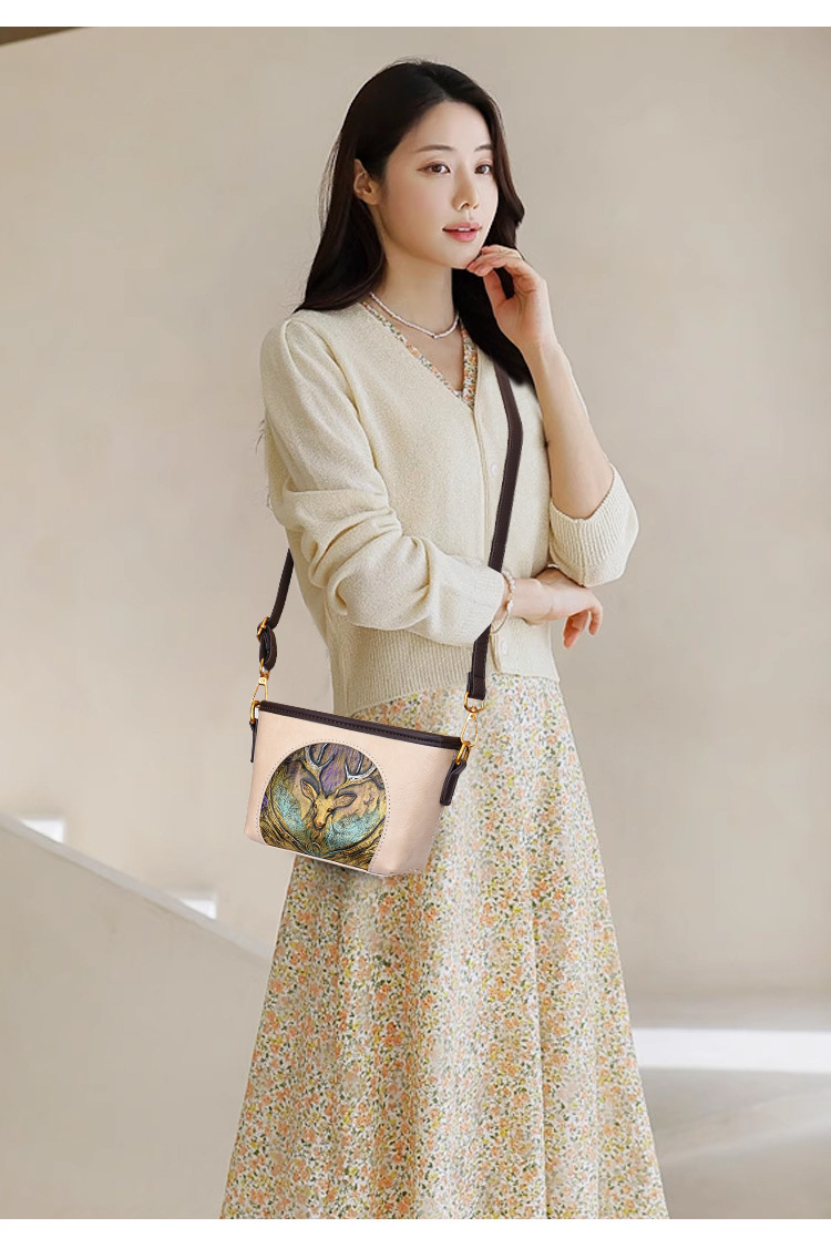 싱글 숄더백 국가 스타일 질감 문학 스타일 양각 메신저 가방 중년 어머니 레저 통근 올 매치 가방 크로스 보더 트렌디
