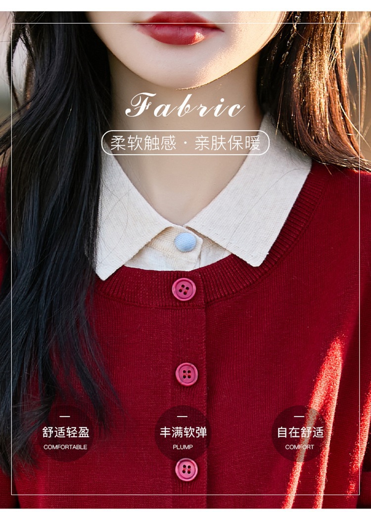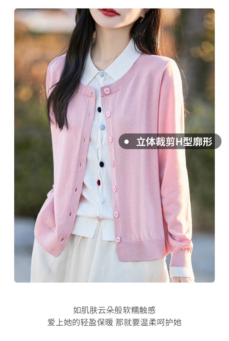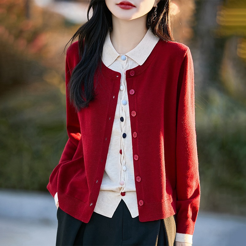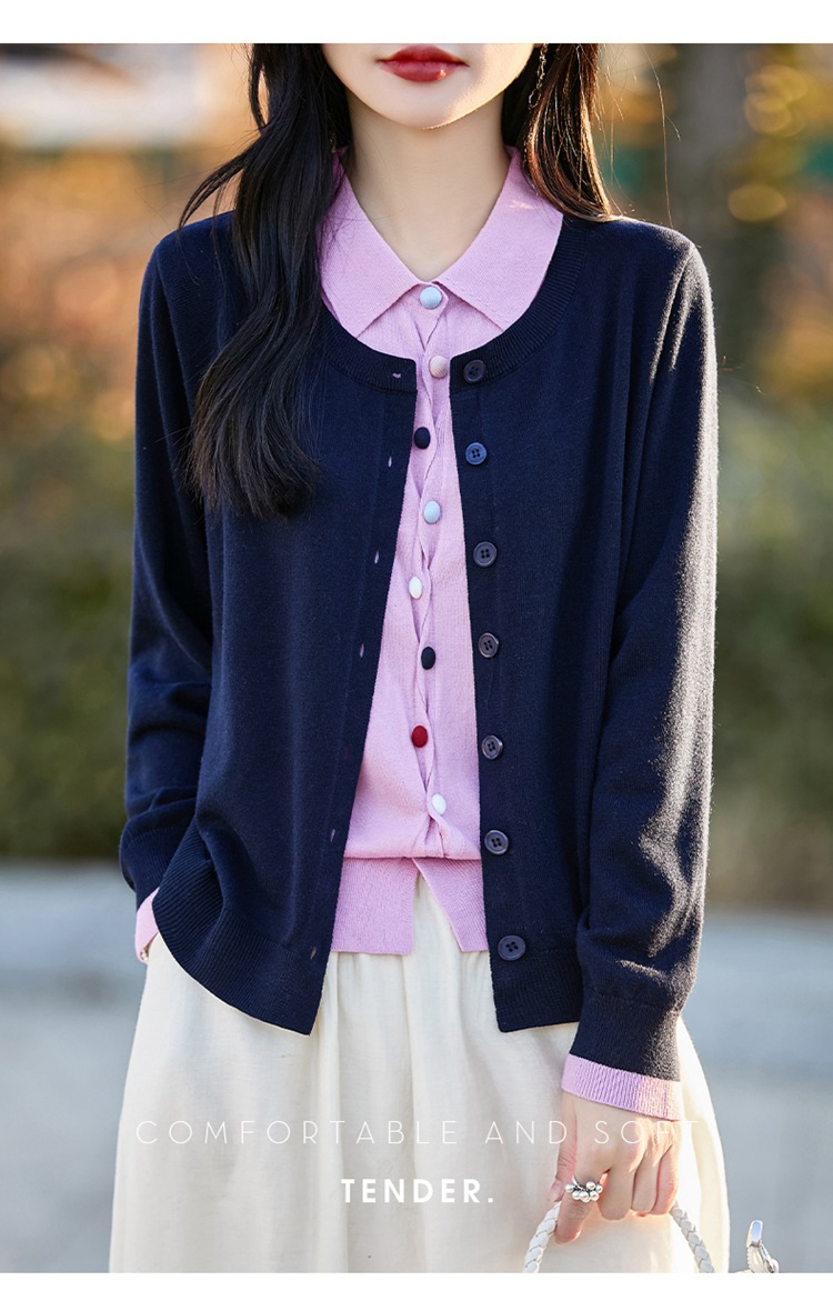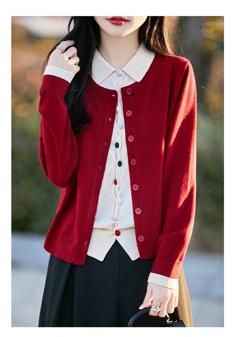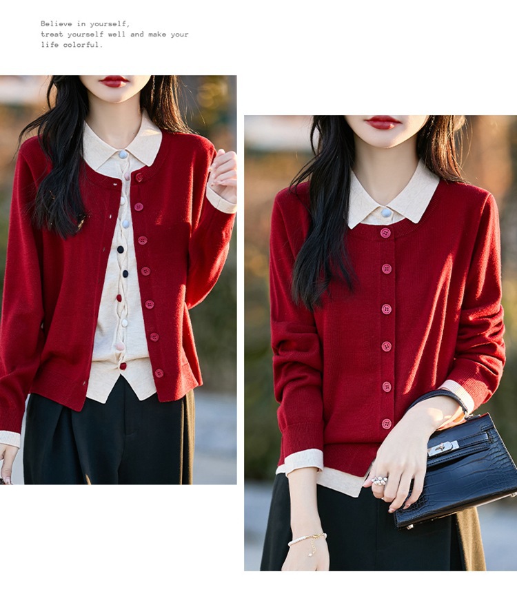 봄 새로운 여성의 다채로운 버클 폴로 칼라 니트 긴 소매 절묘한 모든 경기 서양 스타일 슬림 가짜 투피스 카디건스토어 가기