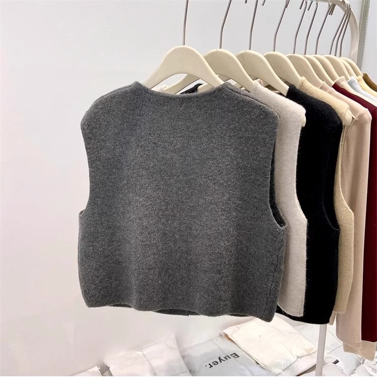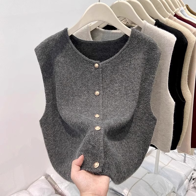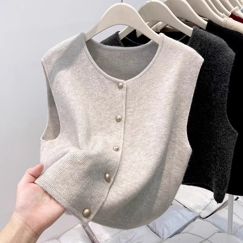 유럽식 유행 여성 2024 년 겨울 새로운 니트 조끼 쌓인 아우터웨어 가을 최고 스웨터 웨이스트 코트 카디건스토어 가기