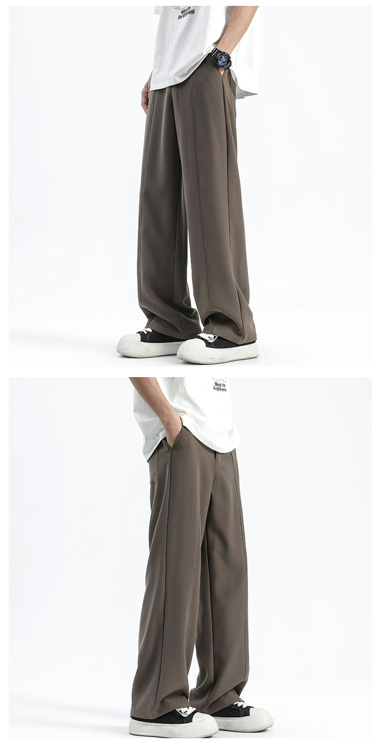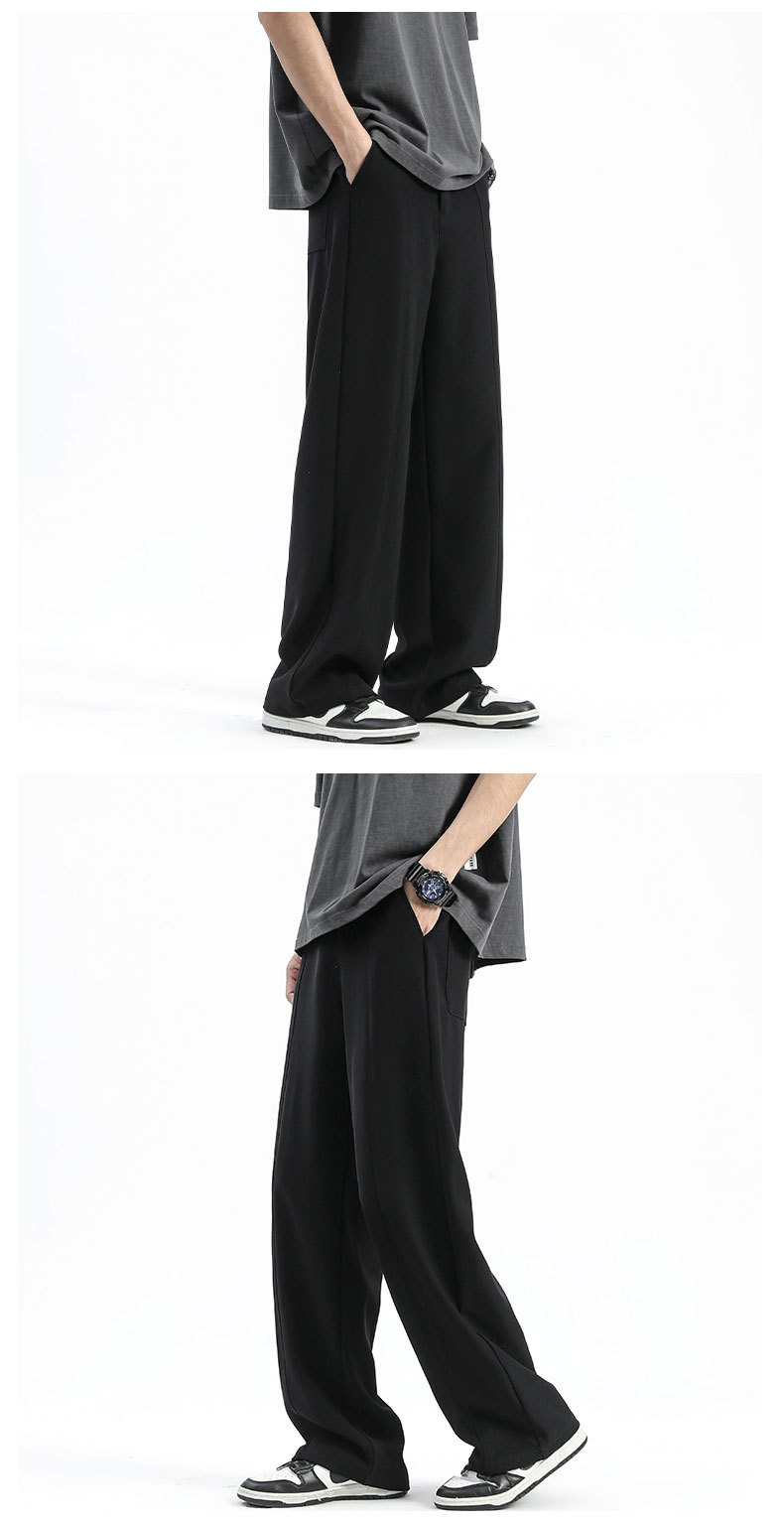 다이퍼 아이스 실크 바지 남자 여름 얇은 넓은 다리 스트레이트 튜브 느슨한 캐주얼 바지 남자 블랙 플루톤 핸섬 바지