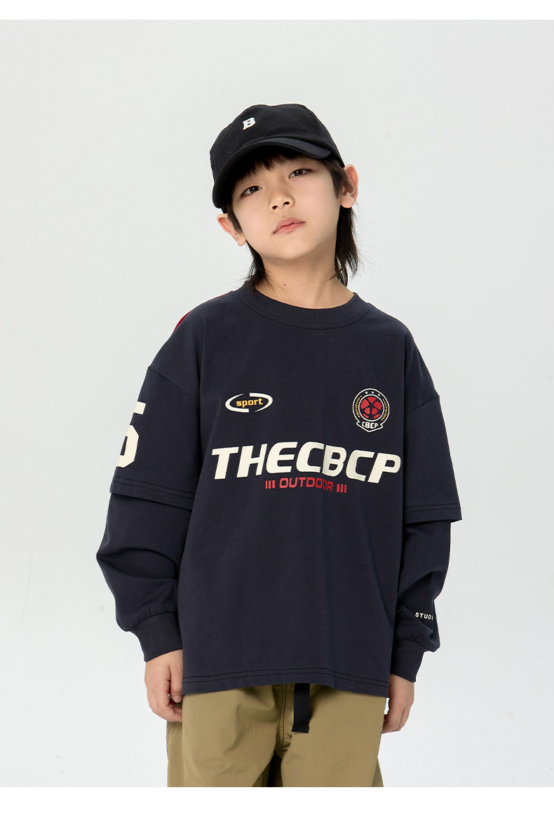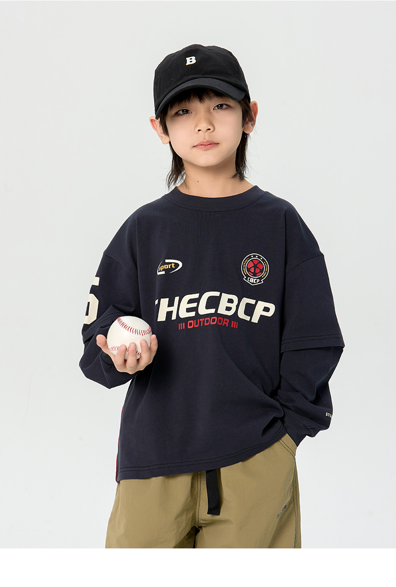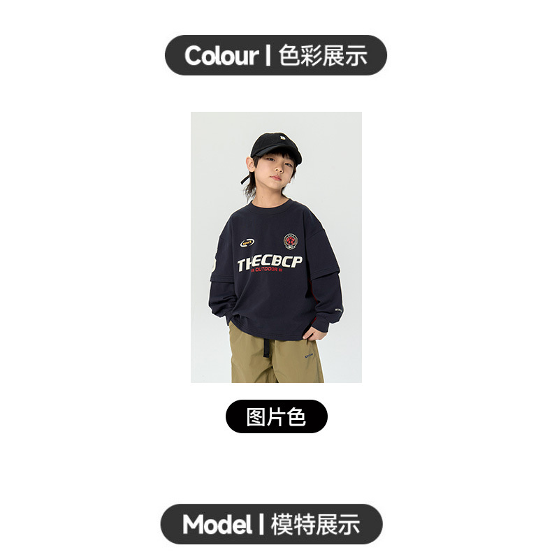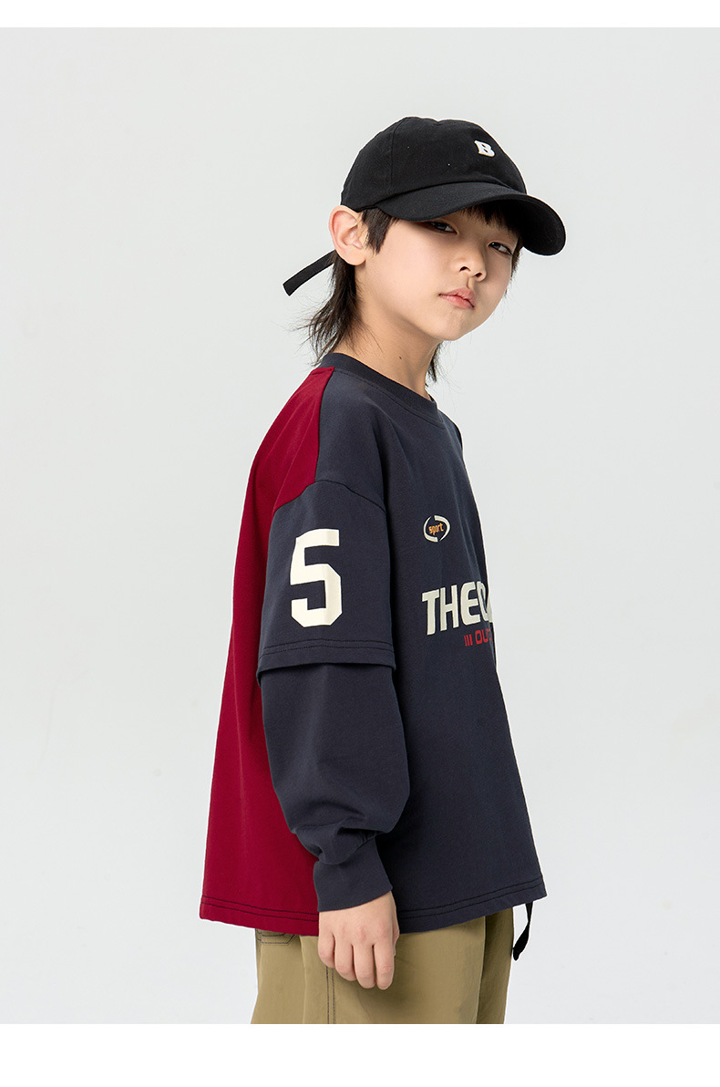 어린이 티셔츠 2025 봄 새 남학생 명암 긴팔 티셔츠 잘 생긴 어린이 가짜 투피스 탑스토어 가기