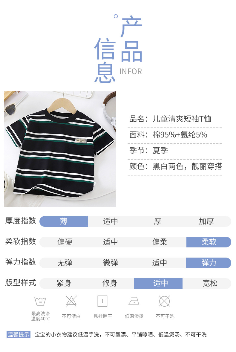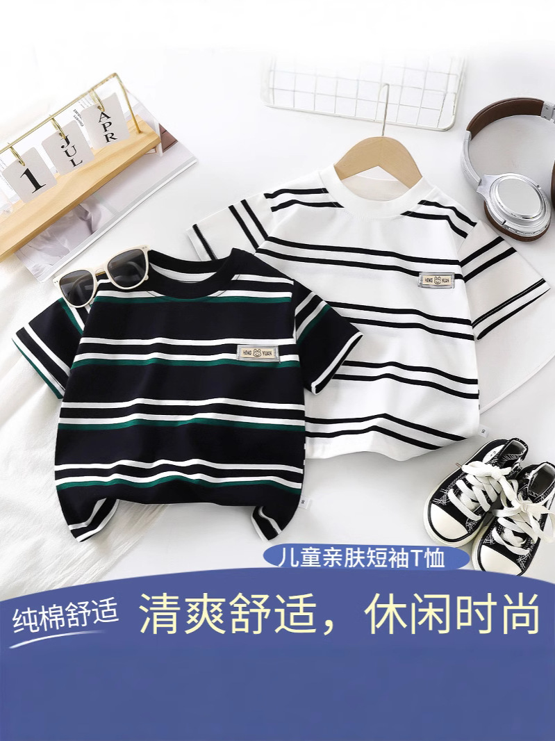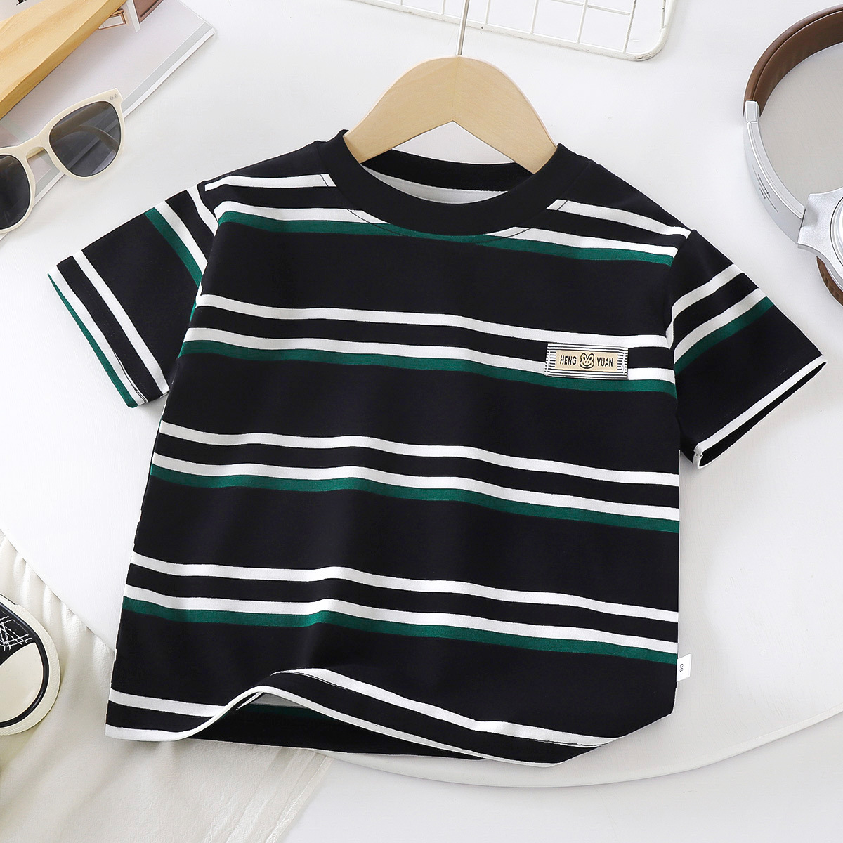 어린이 면화 반소매 중소형 어린이 반팔 탑 남자와 여자 아기 면 티셔츠 여름 줄무늬 반팔 탑 웨스턴 스타일 T