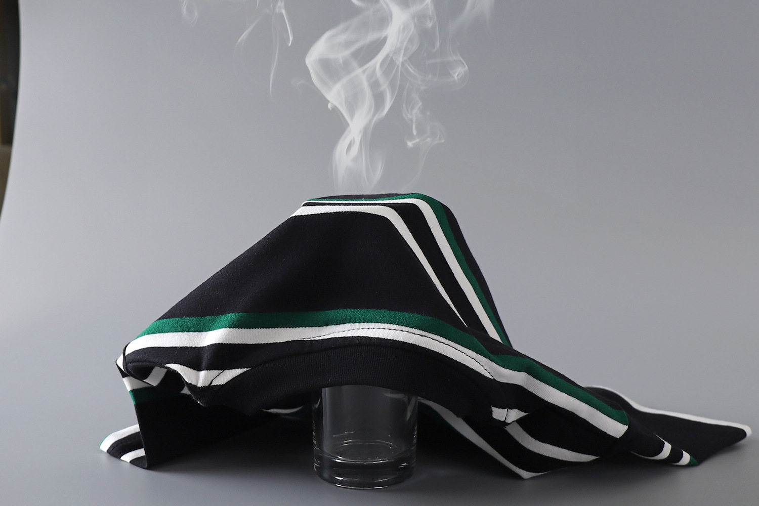 • 스트라이프 면 반소매 - 검정색과 녹색 줄무늬