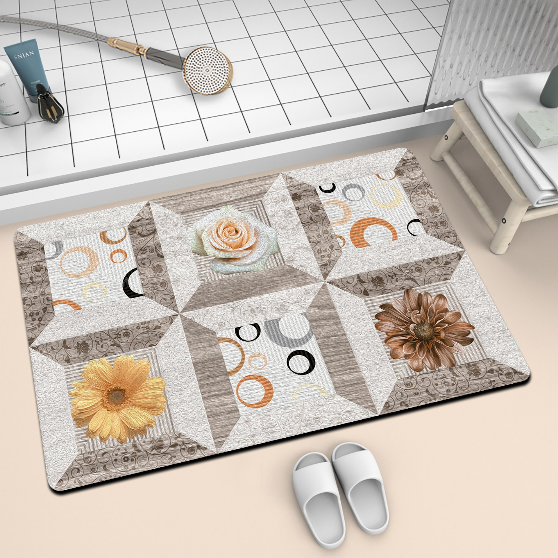 국경 간 단순 규조류 진흙 매트 건조 용이 욕실 미끄럼 방지 매트 아마존 테무 헤어 워시스탠드 풋 매트스토어 가기