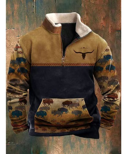 아마존 봄과 가을 새로운 도착 남자의 긴 소매 반 지퍼 인쇄 캐주얼 패션 유럽과 미국의 유행 재킷 코트