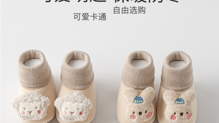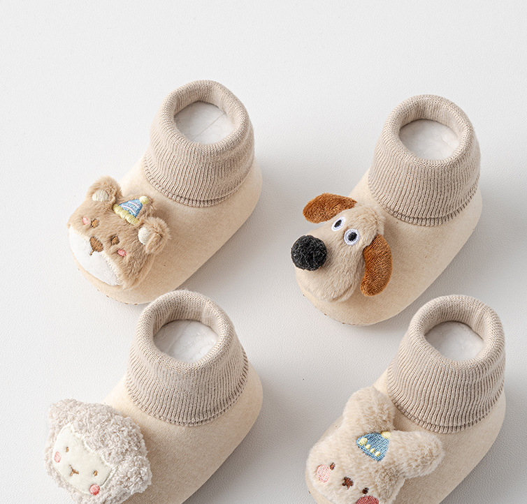 신생아 유아용 신발, 봄과 가을 실내 귀여운 만화 미끄럼 방지 유아용 바닥 양말 신발스토어 가기