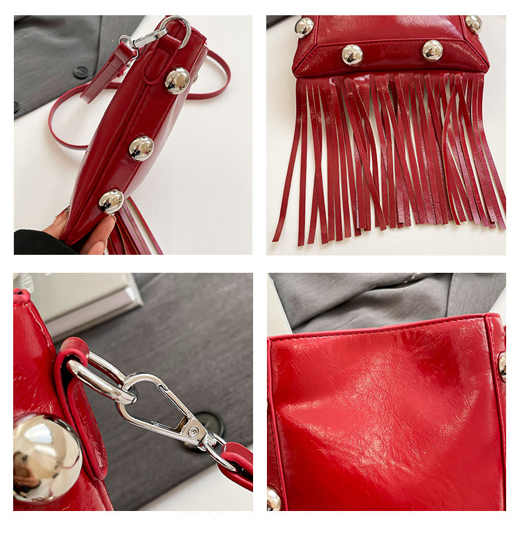 2025 Tassel All-match Spring 새로운 도착 어깨 가방 국경 작은 배낭 캐주얼 가방 리벳 가방 펑크 트렌디 백스토어 가기