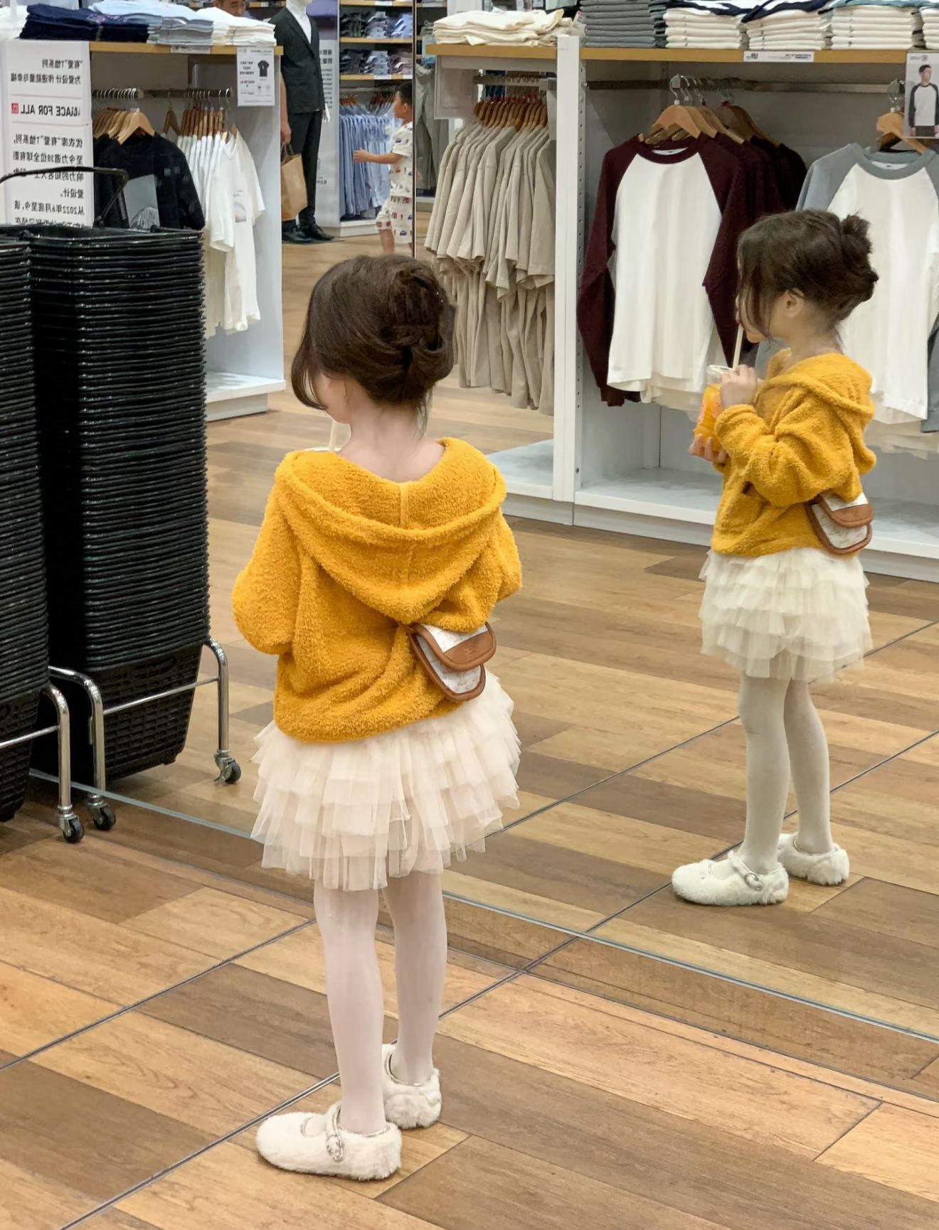 2025 봄 ~ 여자 소프트 왁스 후드 캐주얼 긴 소매 풀오버 레이어 케이크 거즈 스커트 투피스 스커트 별도 샷스토어 가기