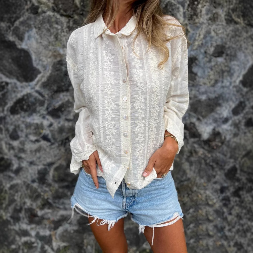 2025 여름 국경 간 유럽과 미국 대외 무역 아마존 러시아 여성의 새로운 느슨한 수 놓은 긴팔면 셔츠 탑