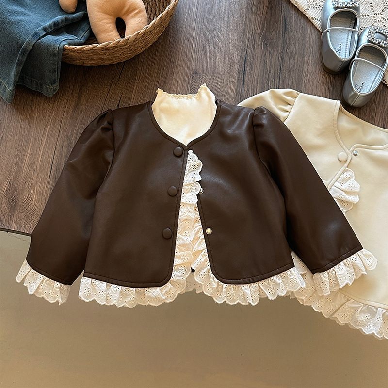 소녀 코트 봄과 가을 2024 새로운 스타일 어린이 PU 가죽 코트 가을 의류 아기 소녀의 가을 재킷 조수스토어 가기