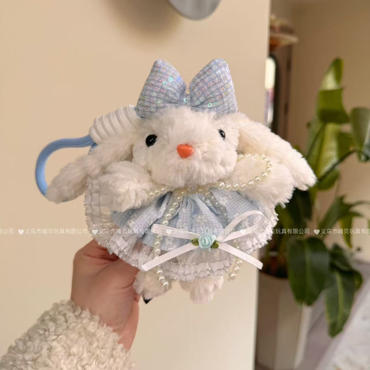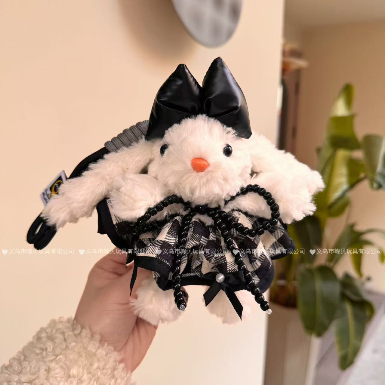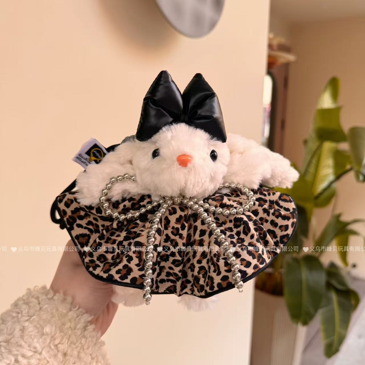 새로운 레오파드 무늬 검은 가장자리 공주 원피스 귀 토끼 가방 긴 귀 토끼 휴대 전화 뒤로 클립 봉제 장난감 공장 아울렛스토어 가기
