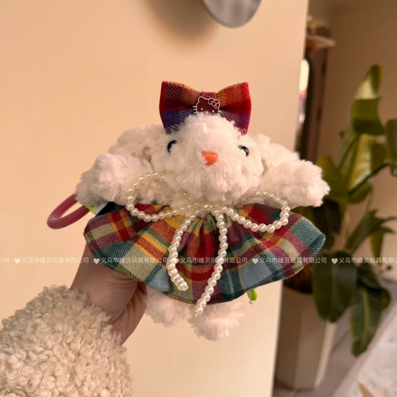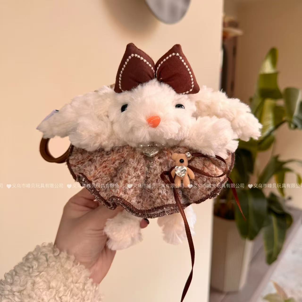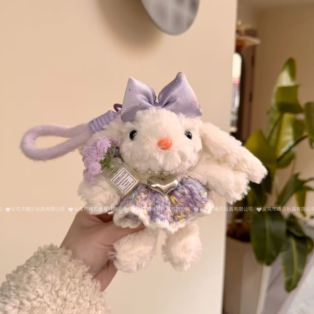 새로운 레오파드 무늬 검은 가장자리 공주 원피스 귀 토끼 가방 긴 귀 토끼 휴대 전화 뒤로 클립 봉제 장난감 공장 아울렛스토어 가기