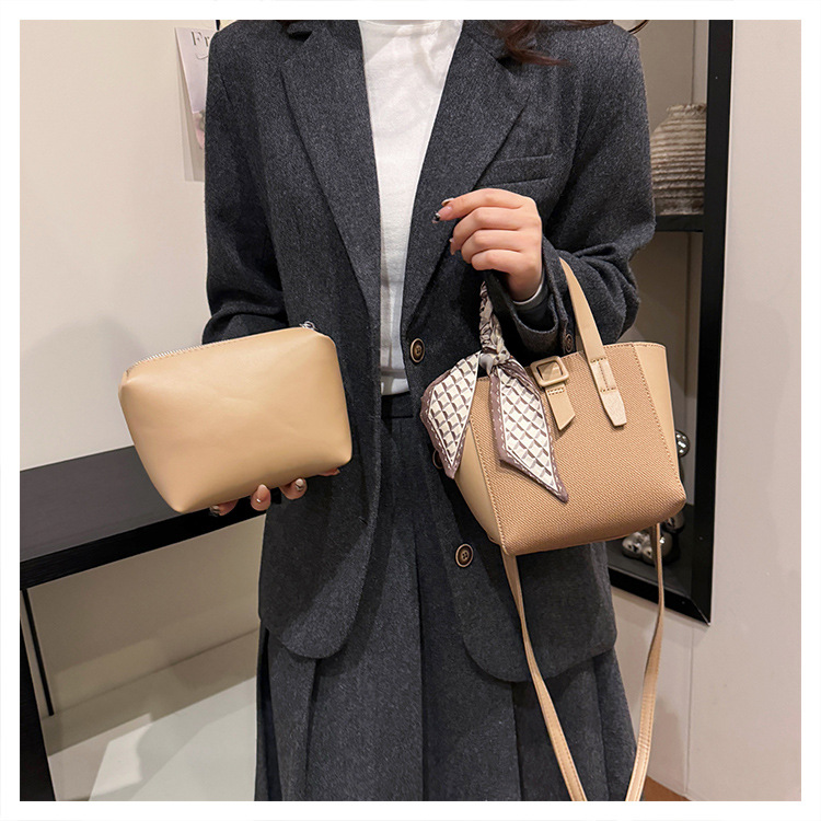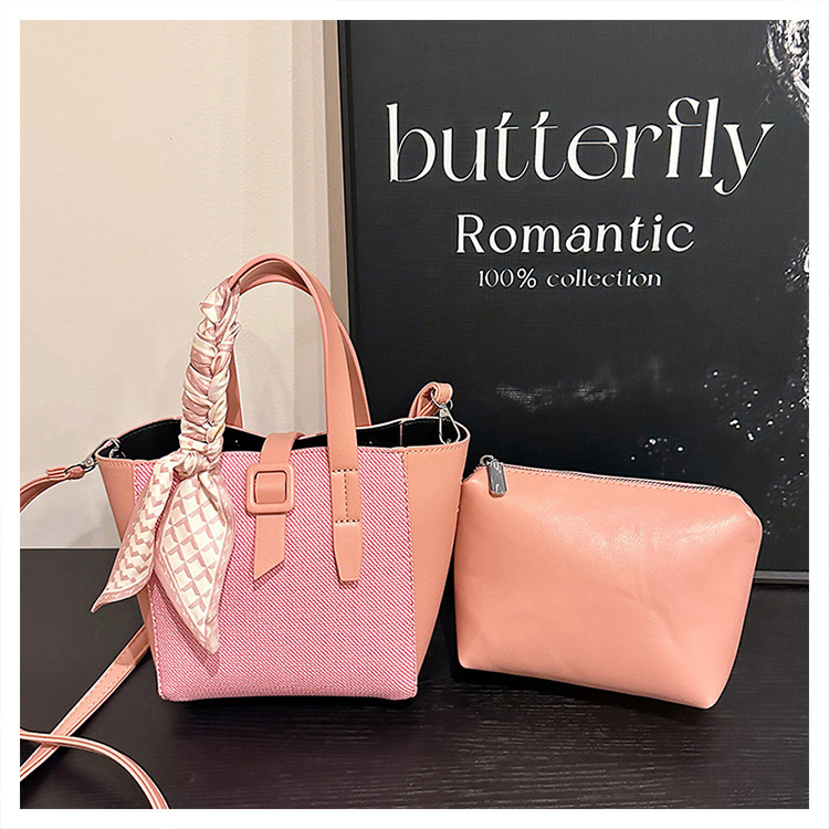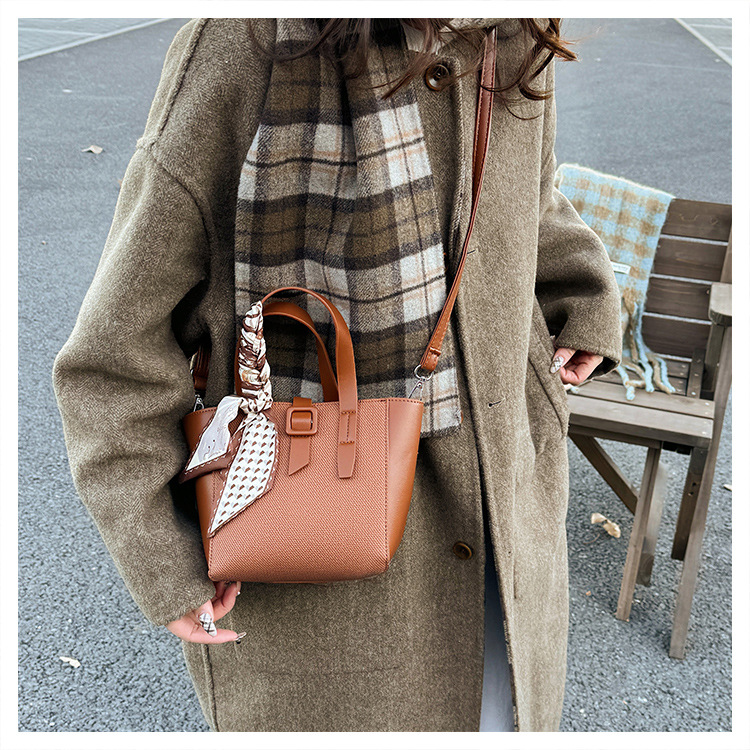 국경 간 새로운 대외 무역 실크 스카프 핸드백 2025 봄 유행 여성 어깨 크로스 바디 버킷 가방 어머니 가방