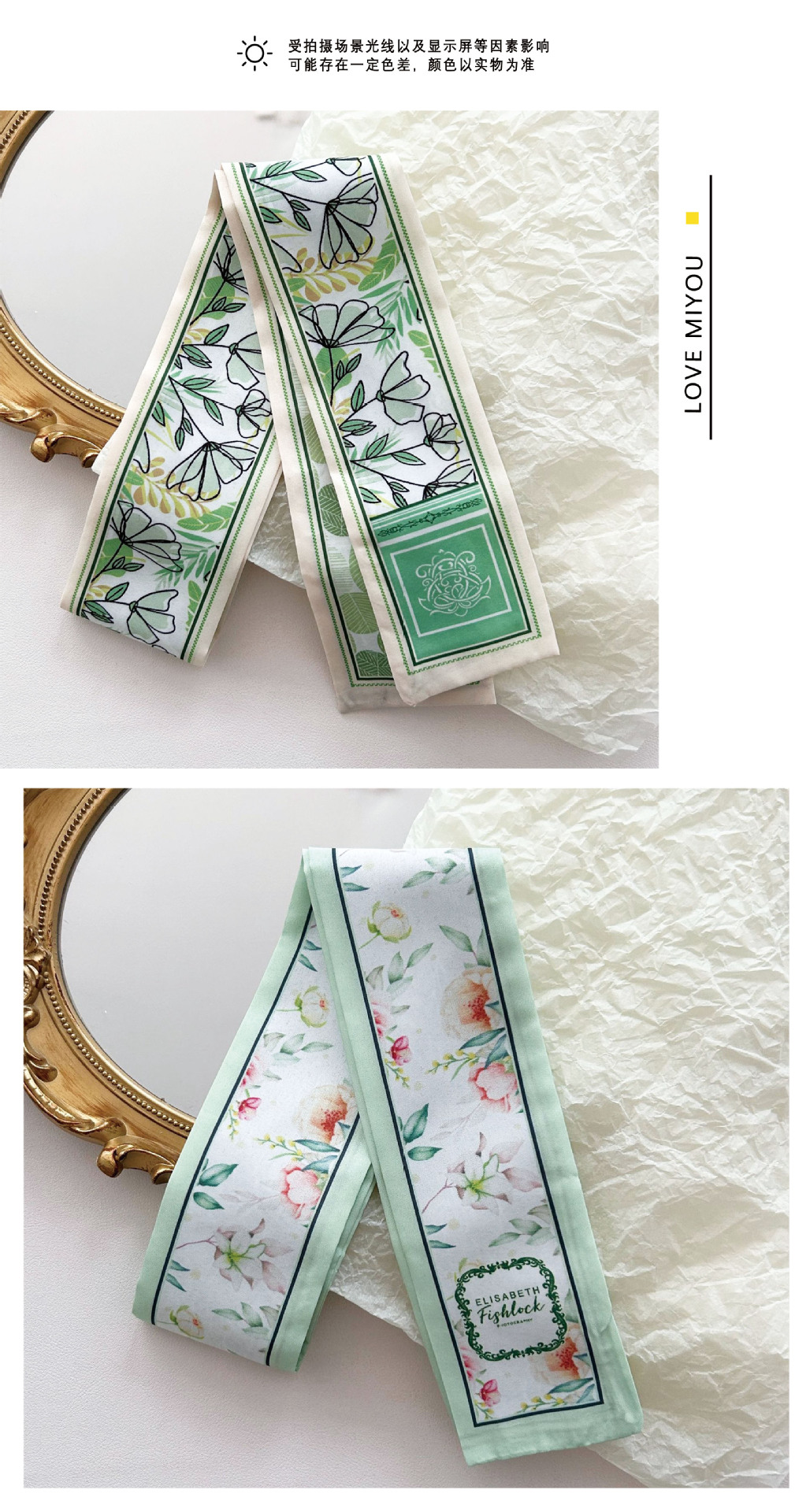 프랑스 스타일 봄과 여름 녹색 작은 실크 스카프 얇은 좁은 긴 스트립 넥타이 가방 장식 선물 상자 리본 올 매치 스카프