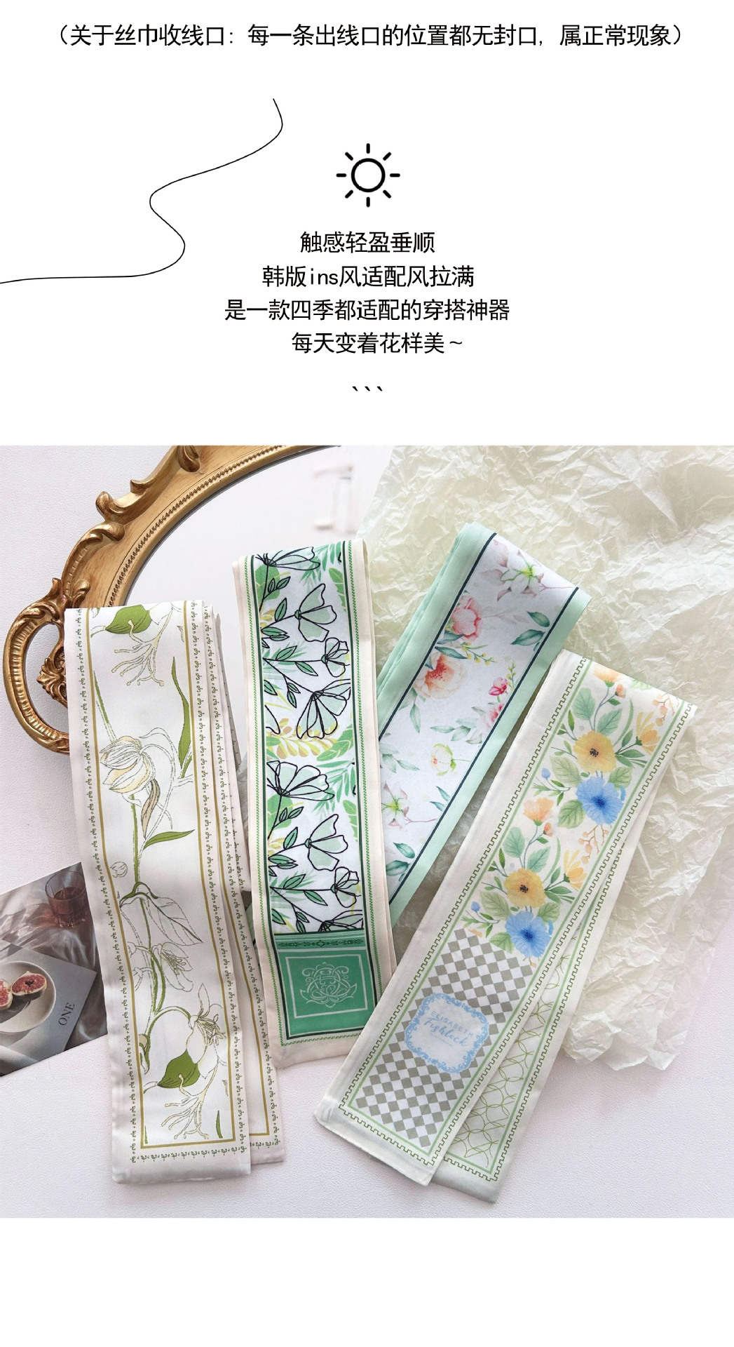 프랑스 스타일 봄과 여름 녹색 작은 실크 스카프 얇은 좁은 긴 스트립 넥타이 가방 장식 선물 상자 리본 올 매치 스카프스토어 가기