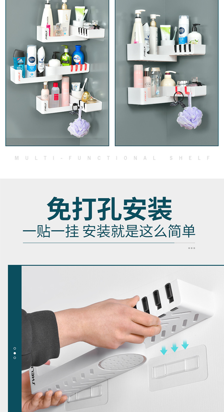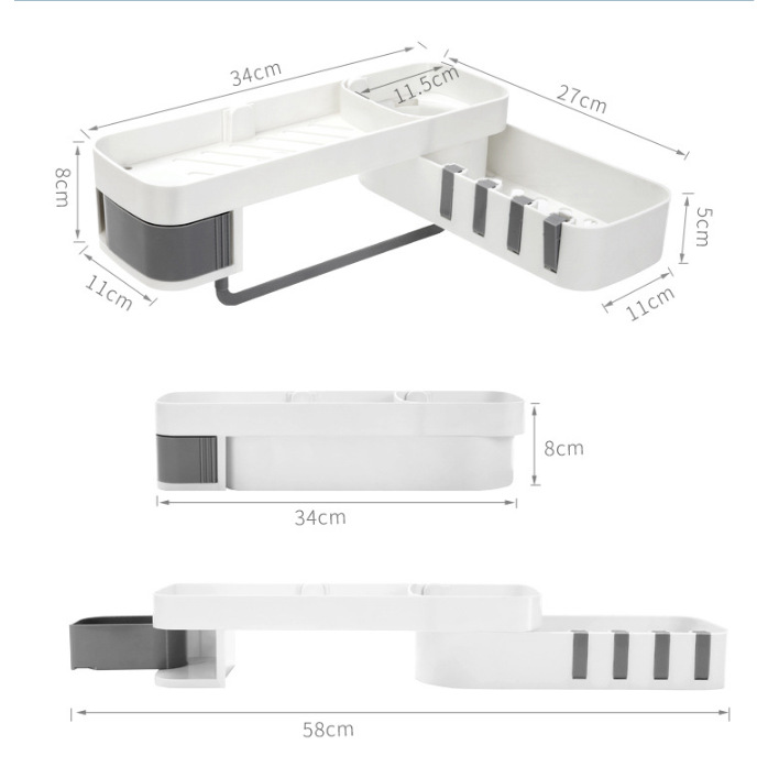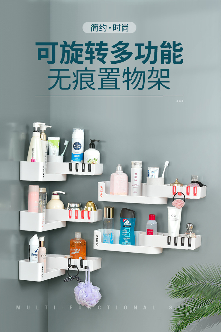다기능 회전 가능한 저장 랙 벽걸이 형 화장실 저장 상자 가정용 멀티 앵글 비 마킹 펀치 프리 설치스토어 가기