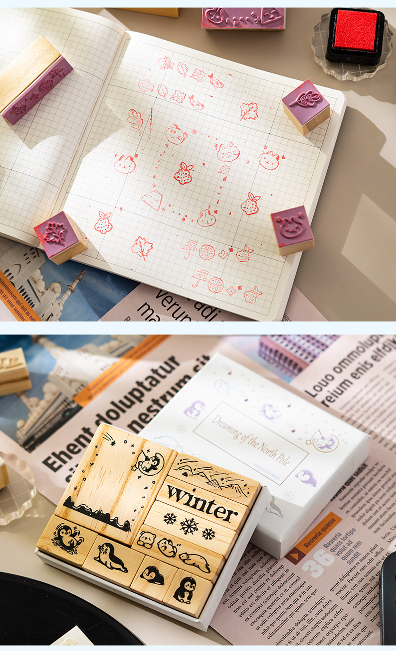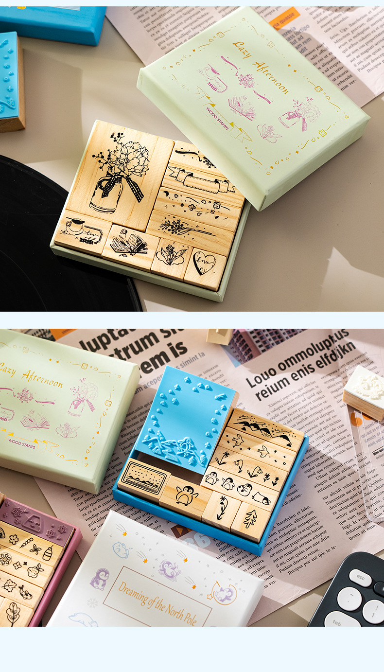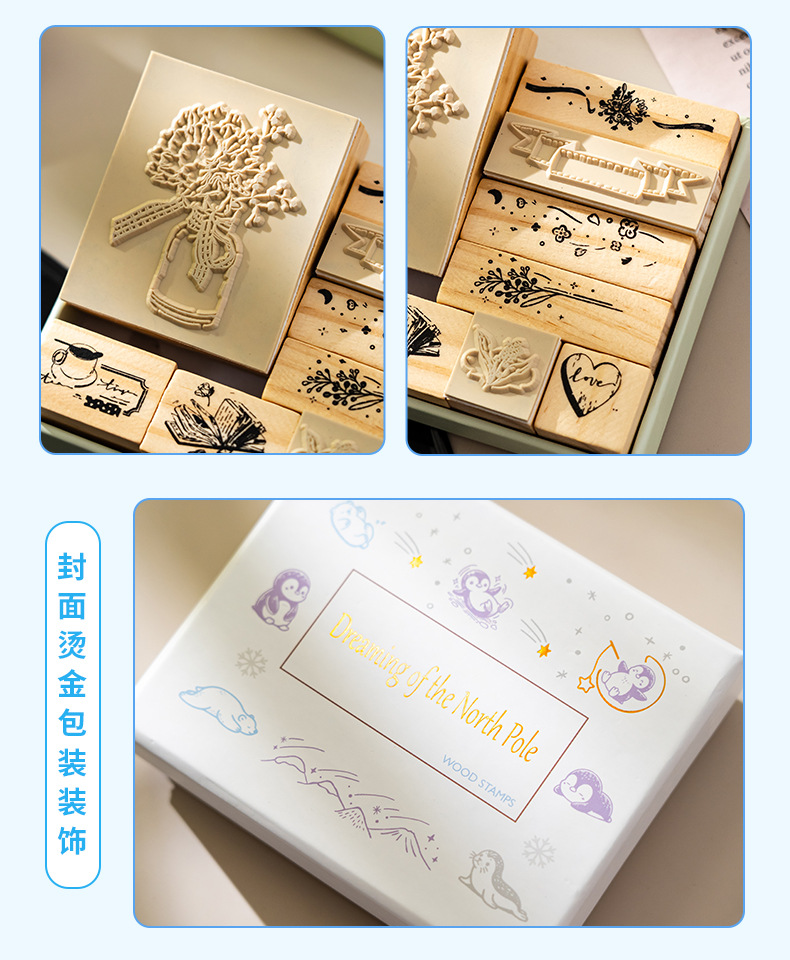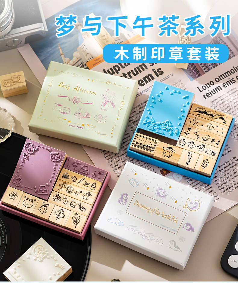 나무 물개 세트 국경 손 계정 DIY 작은 요소 창조적 인 만화 바람 장식 재료 씰 손 계정