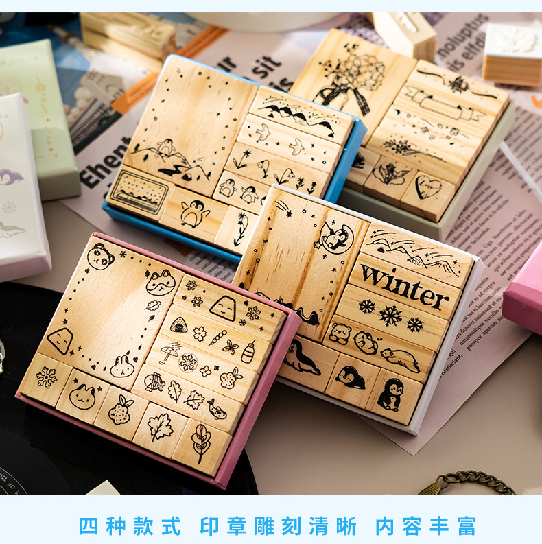 나무 물개 세트 국경 손 계정 DIY 작은 요소 창조적 인 만화 바람 장식 재료 씰 손 계정스토어 가기
