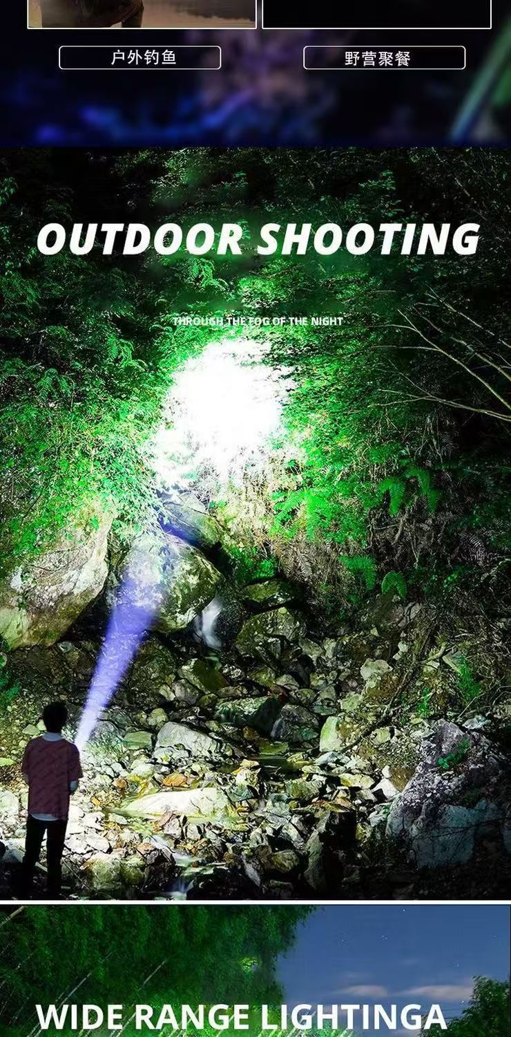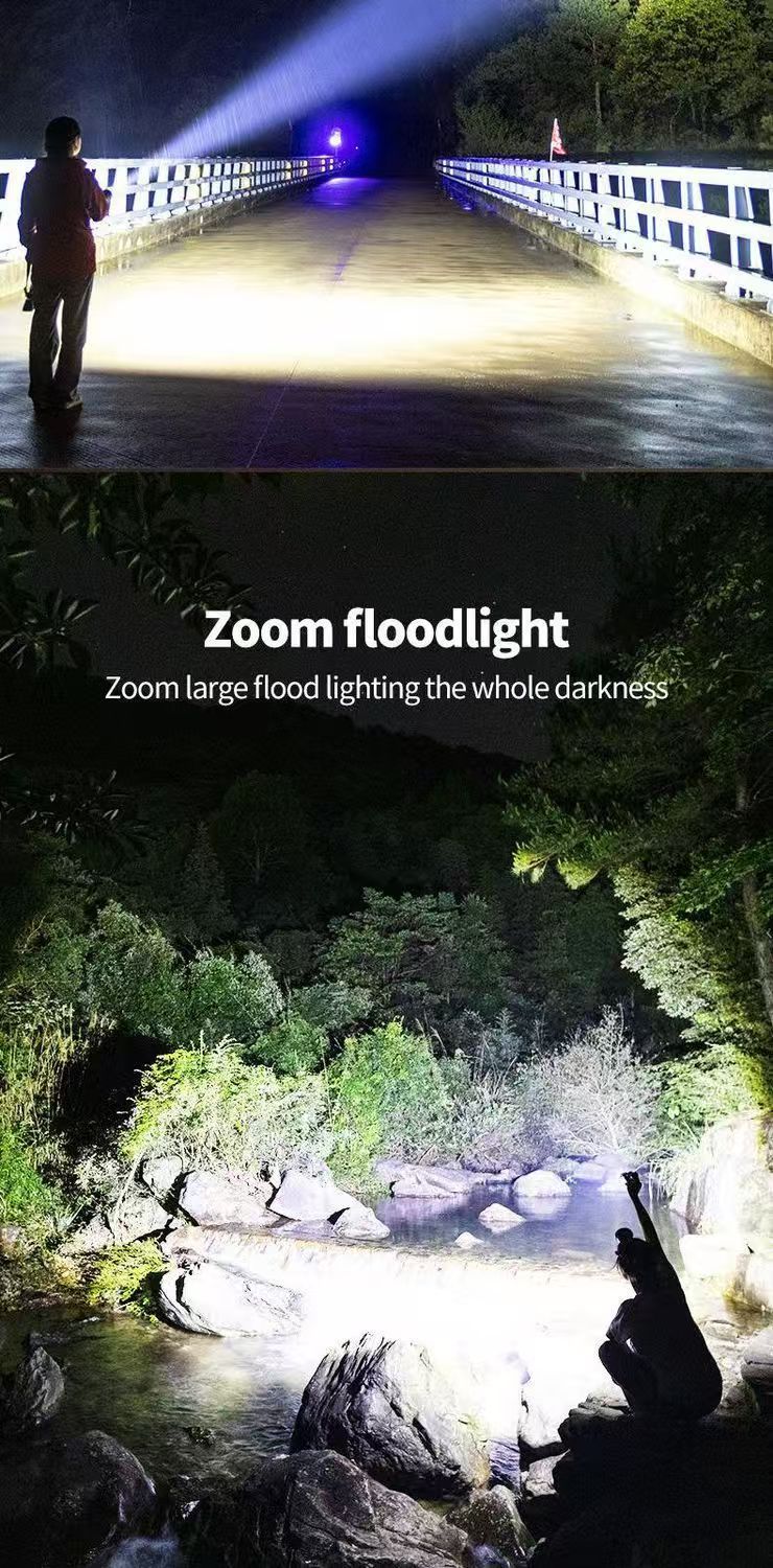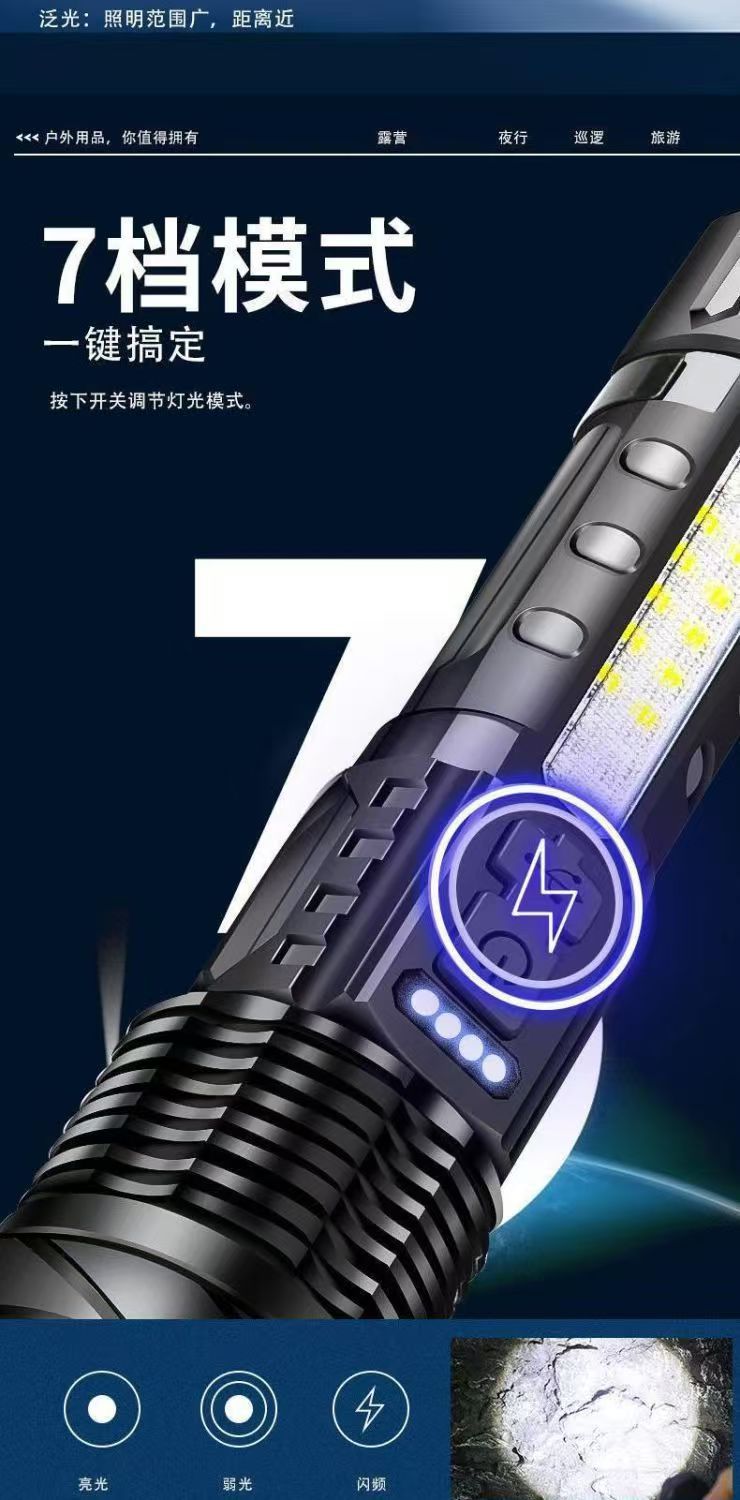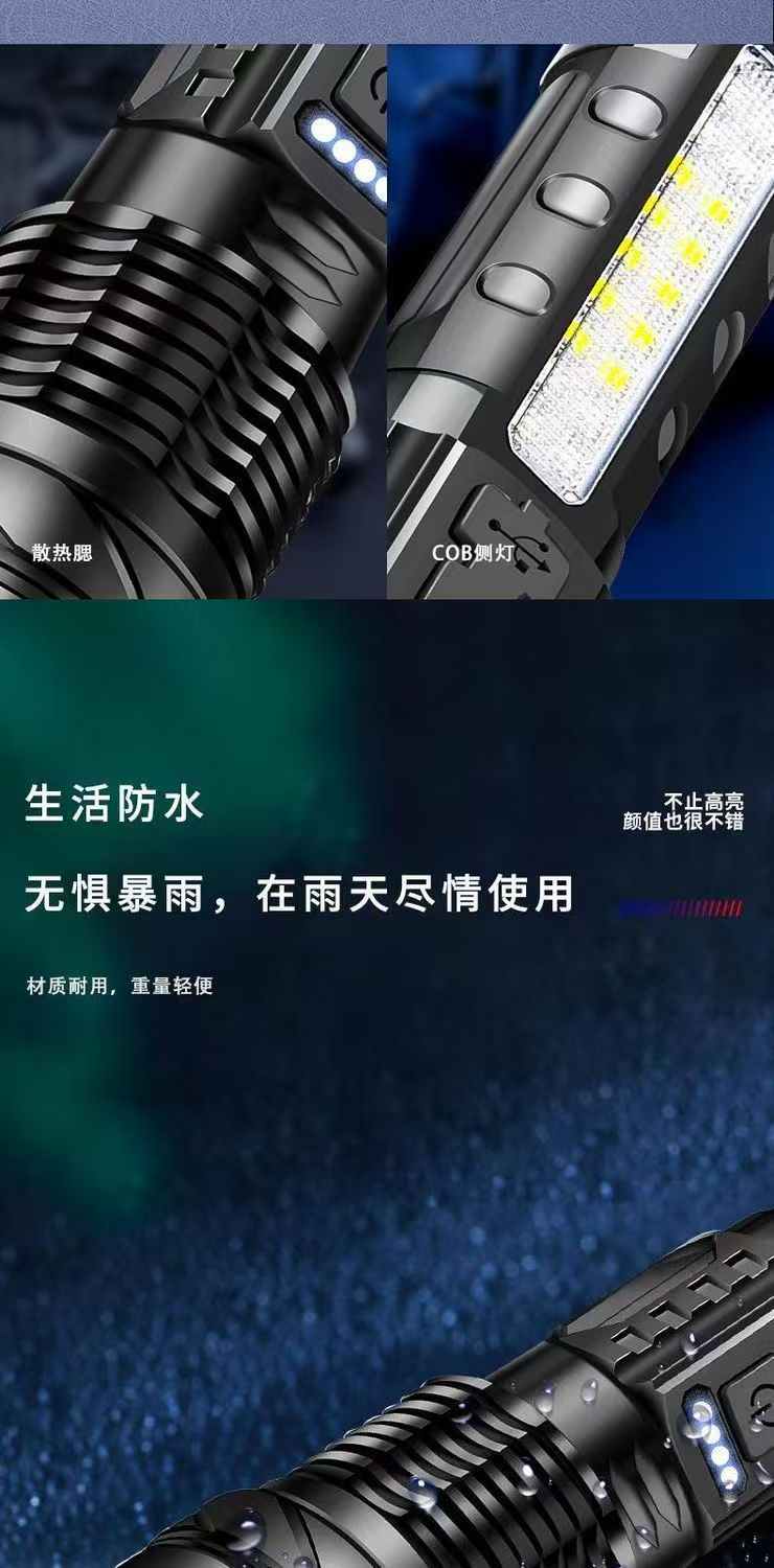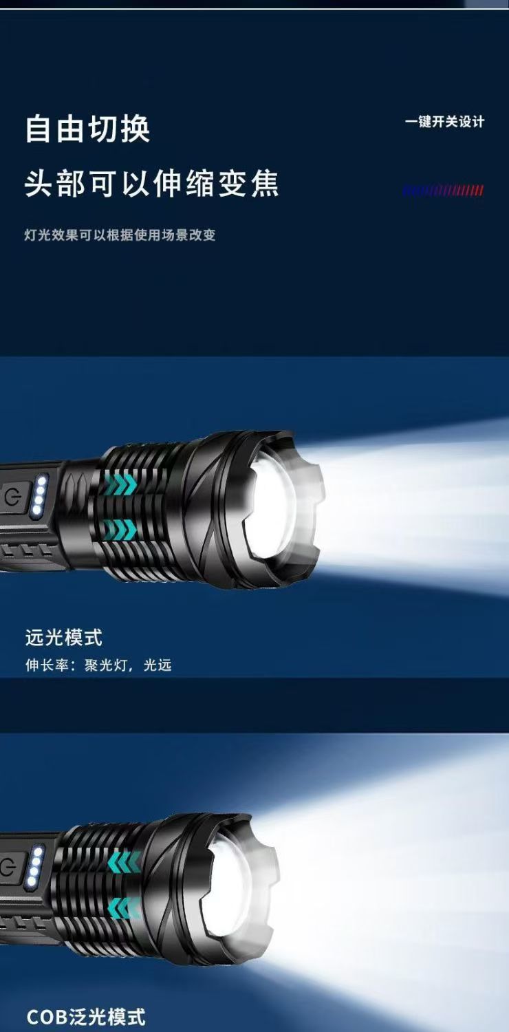 새로운 흰색 레이저 망원경 줌 원격 LED 손전등 홈 야외 빨간색과 파란색 경고 COB 사이드 라이트
