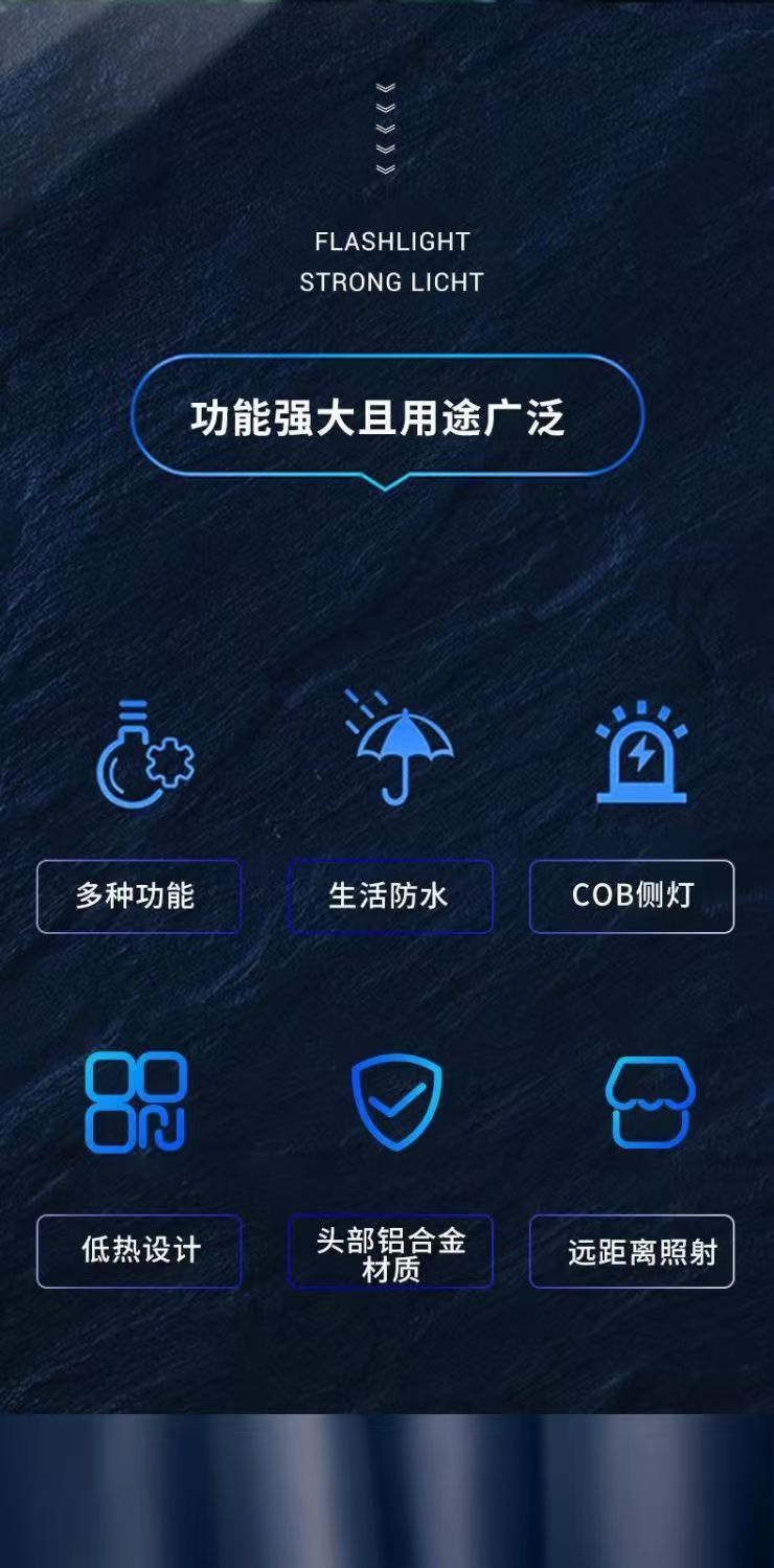 • [A76 손전등 ABS 재질] 색상 상자 + 펜 버클 + 충전 케이블 + 빨간색과 파란색 경고등