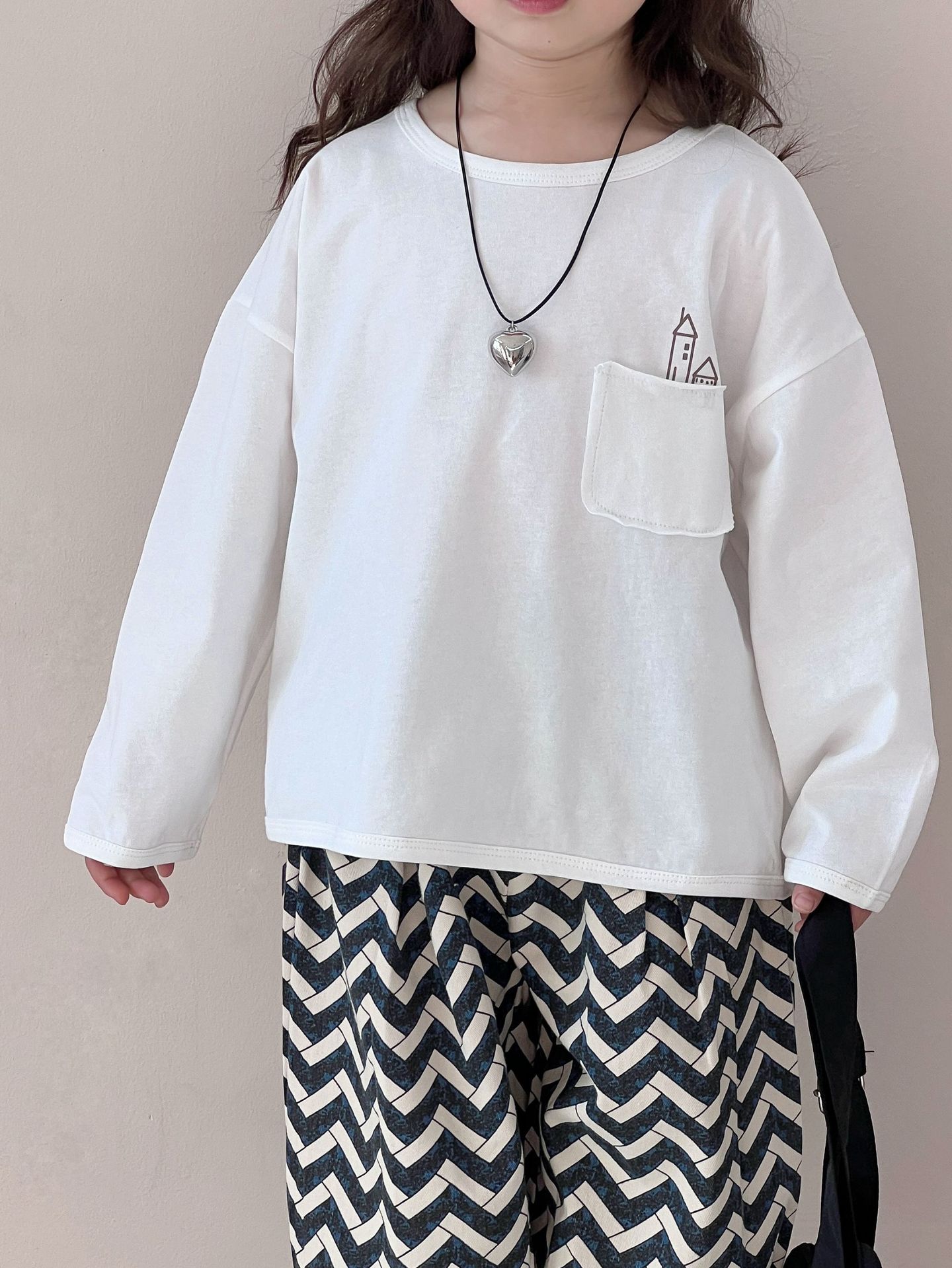 반품 불가, 오리지널 가격 58 가을 한국 아동 캐주얼하고 귀엽고 세련된 만화 프린트 긴팔 라운드 넥 티셔츠 세트