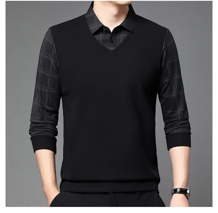2025 봄과 가을 새로운 남자 티셔츠 캐주얼 옷깃 가짜 투피스 탑 남자 긴팔 유행 올매치 남성복