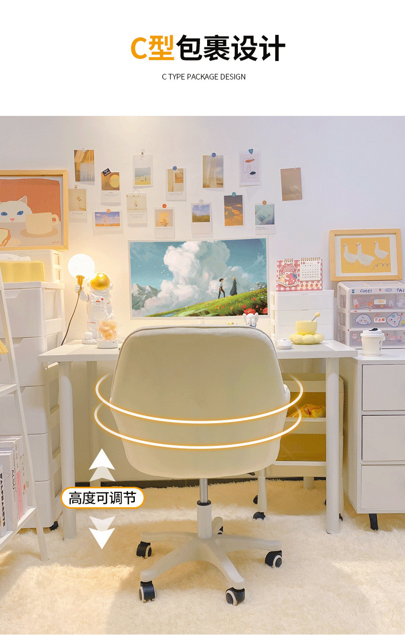 홈 컴퓨터 의자 소녀의 침실 의자 좌석 귀여운 작은 회전 의자 리프팅 학습 책상 의자 기숙사