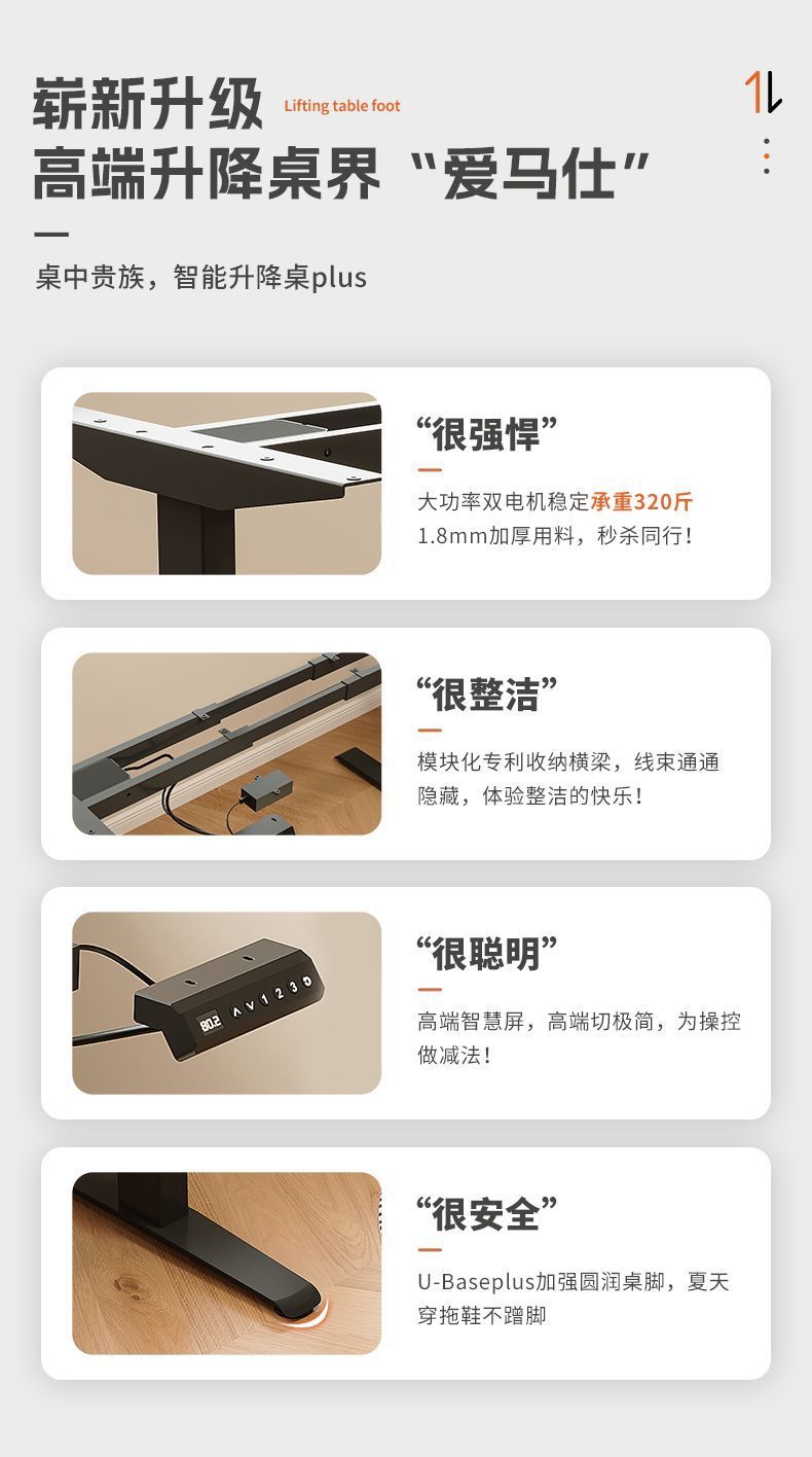 리프팅 테이블 스탠드 전기 듀얼 모터 책상 개폐식 조절 높이 리프팅 다리 자동 리프팅 컴퓨터 책상스토어 가기