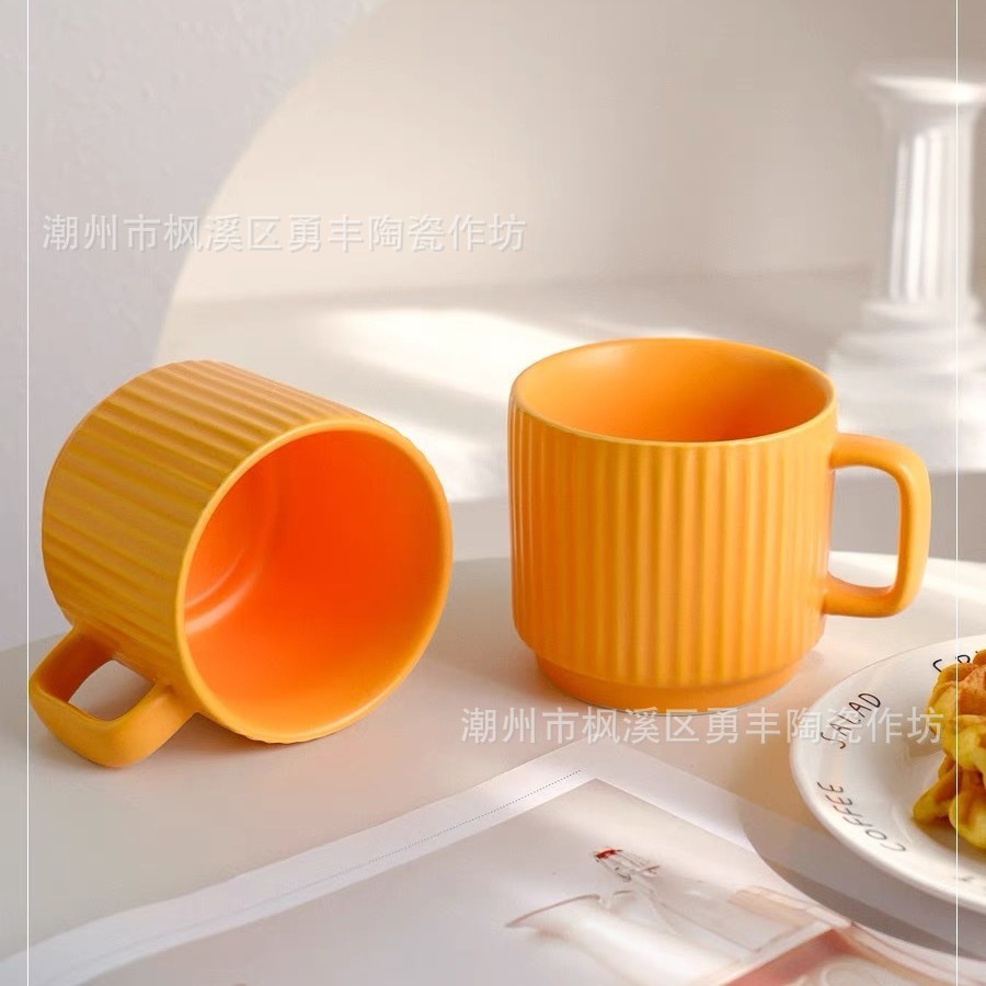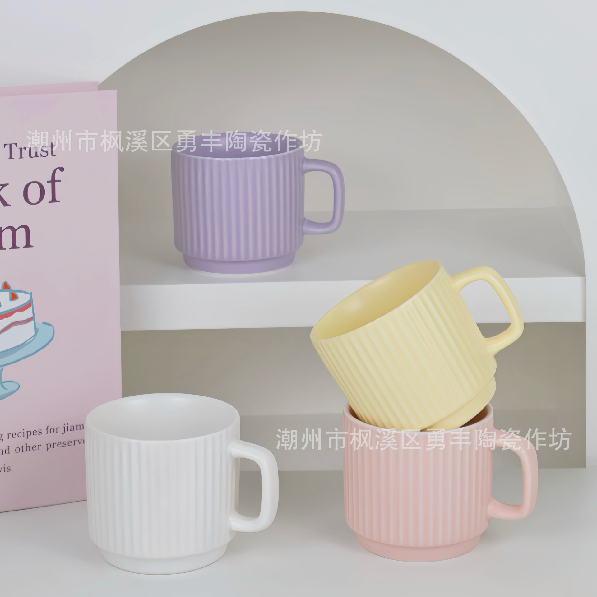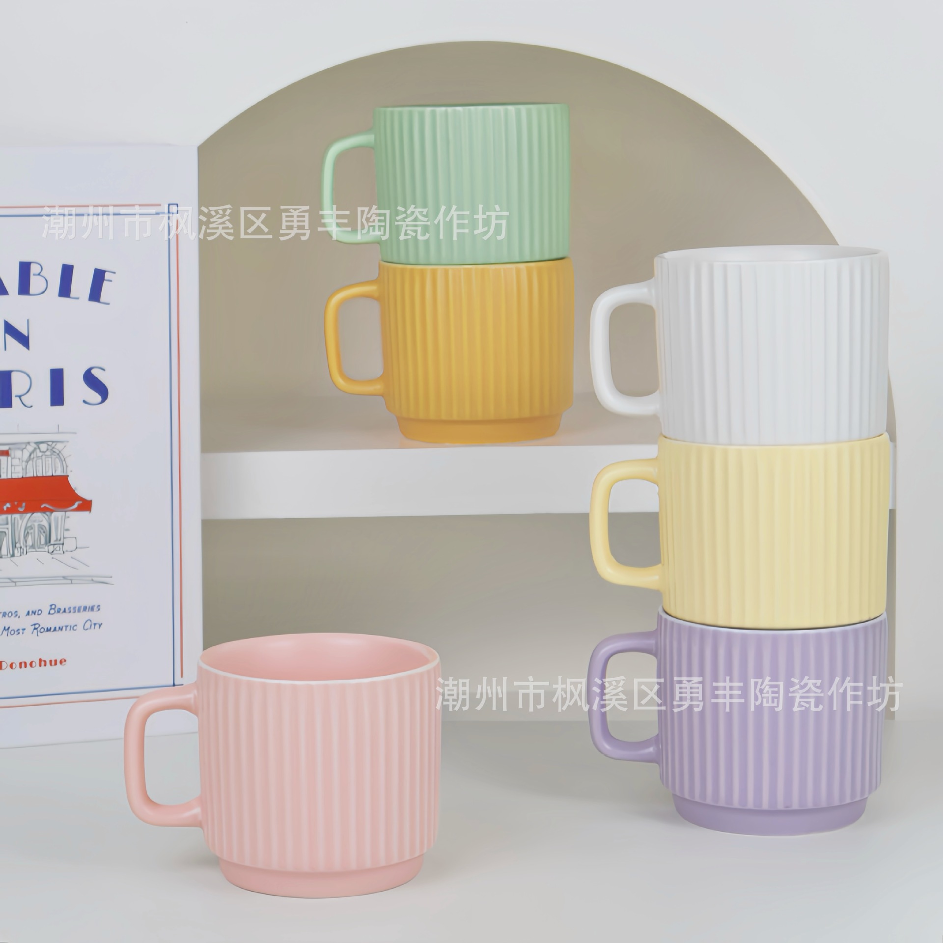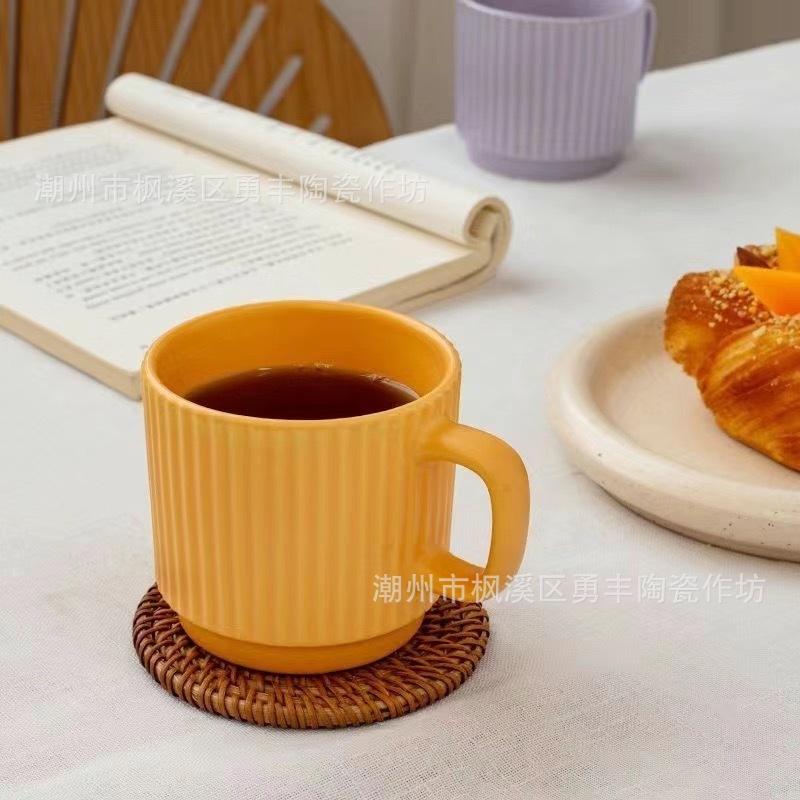 수직 곡물 머그잔 선물 컵 가정용 세라믹 컵 커플 컵 컵 커피 컵 줄무늬 아침 식사 컵 물 컵 도매스토어 가기
