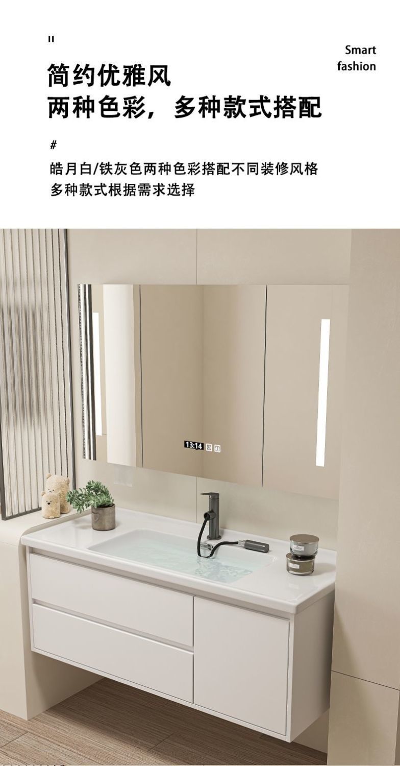• Haoyuebai 스마트 풀 미러 캐비닛 - 60cm 세라믹 일체형 세면대 + 액세서리 풀 세트