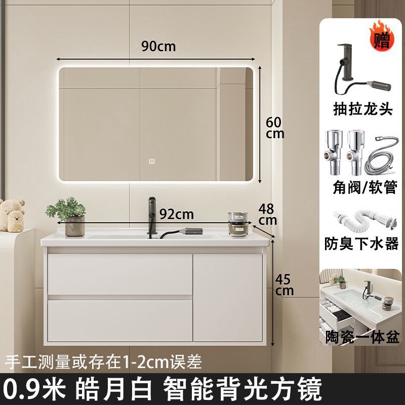 • Haoyuebai 스마트 풀 미러 캐비닛-90cm 세라믹 일체형 세면대 + 액세서리 풀 세트